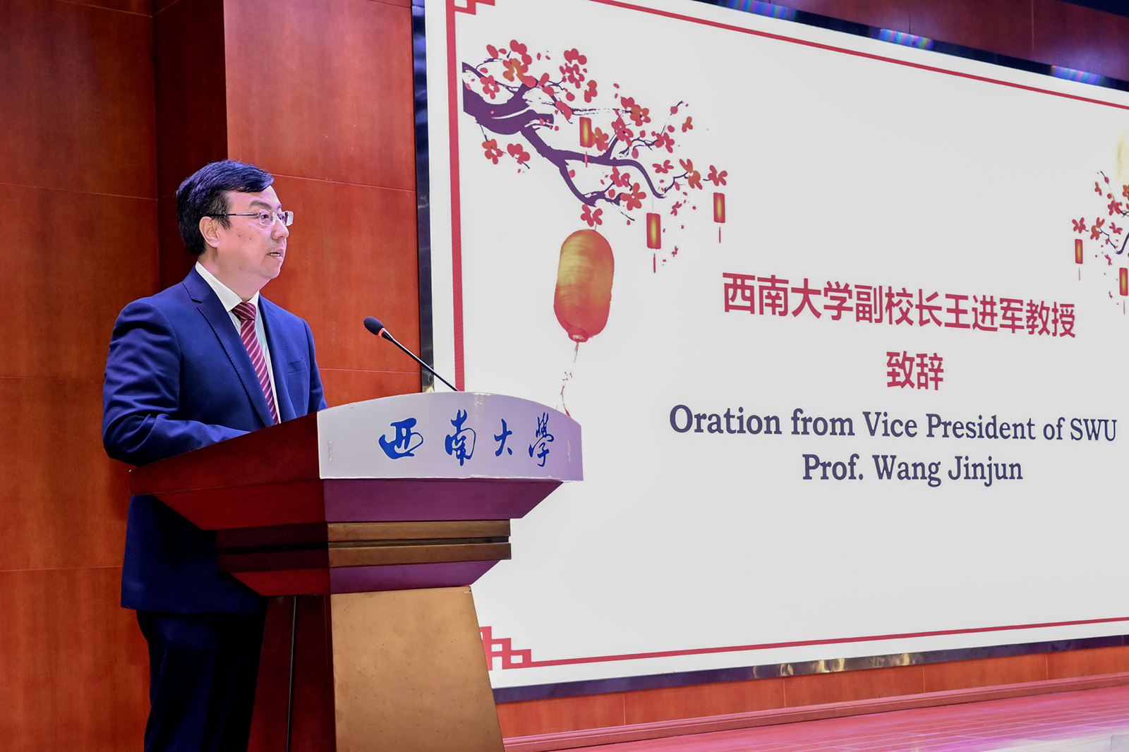 王进军向来自韦伯州立大学的“网友们”送出中秋祝福,回顾两校的合作历史,简要介绍学校概况,认为两校共建的“中国语言文化教育项目”为服务当地需求,开展中文教学提供了良好平台,希望两校携手共进、开拓创新,在优势学科领域开展更为广泛深入的合作。