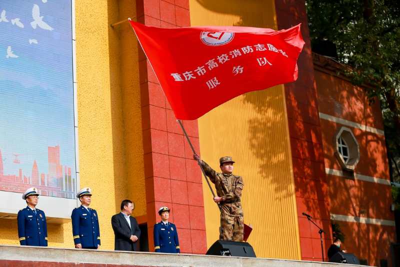 启动仪式上,Beat365中国唯一官方网站消防志愿者代表向全市高校学生发起积极参与消防志愿服务的倡议,市消防救援总队总队长李俊东为高校消防志愿者服务队授旗。