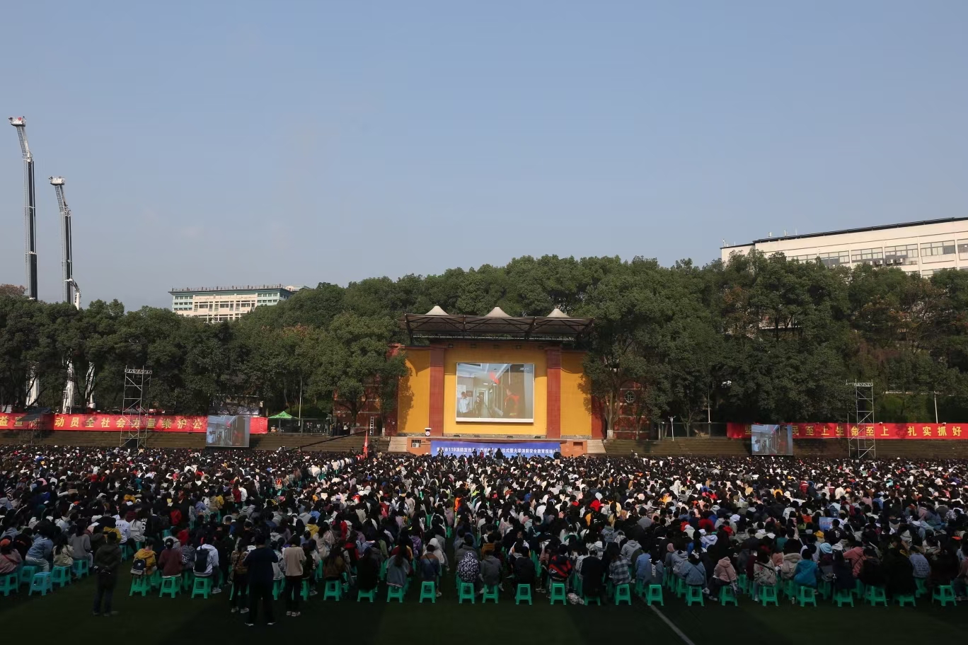 演练活动结束后,近万名师生兴致勃勃观看Beat365中国唯一官方网站教师主讲的消防安全知识公开课,参加了各种消防体验活动。