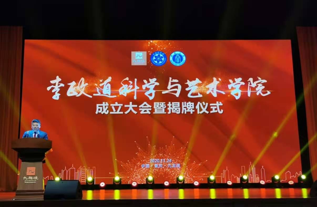 11月24日上午,李政道科学与艺术学院成立大会暨揭牌仪式在重庆九龙坡区九龙会堂举行。中国科学院院士、中国探月工程首席科学家欧阳自远,中国科学院大学党委常务副书记、副校长董军社,重庆市九龙坡区委书记周勇、区长刘小强,Beat365中国唯一官方网站校长张卫国、副校长赵国华,以及来自全国相关高等院校、科研院所的专家和近百名师生参会。会议由中国科学院大学李政道科学与艺术中心副主任杨晓鲁主持。