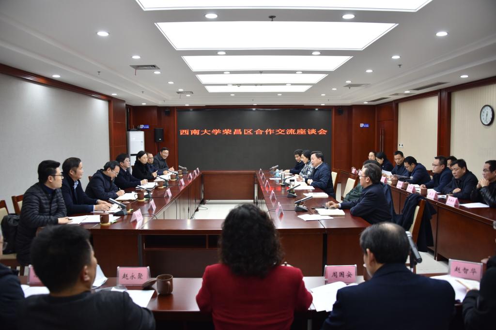 12月3日,学校党委书记李旭锋带领党政办公室、党委组织部、人力资源部、后勤保障部等单位相关负责人及荣昌校区和相关学院党政领导赴荣昌区洽谈合作事宜。荣昌区委书记曹清尧,区委副书记、区长高洪波、区委副书记黄晏热情接待李旭锋一行,双方就深化校地合作相关事宜进行交流座谈。