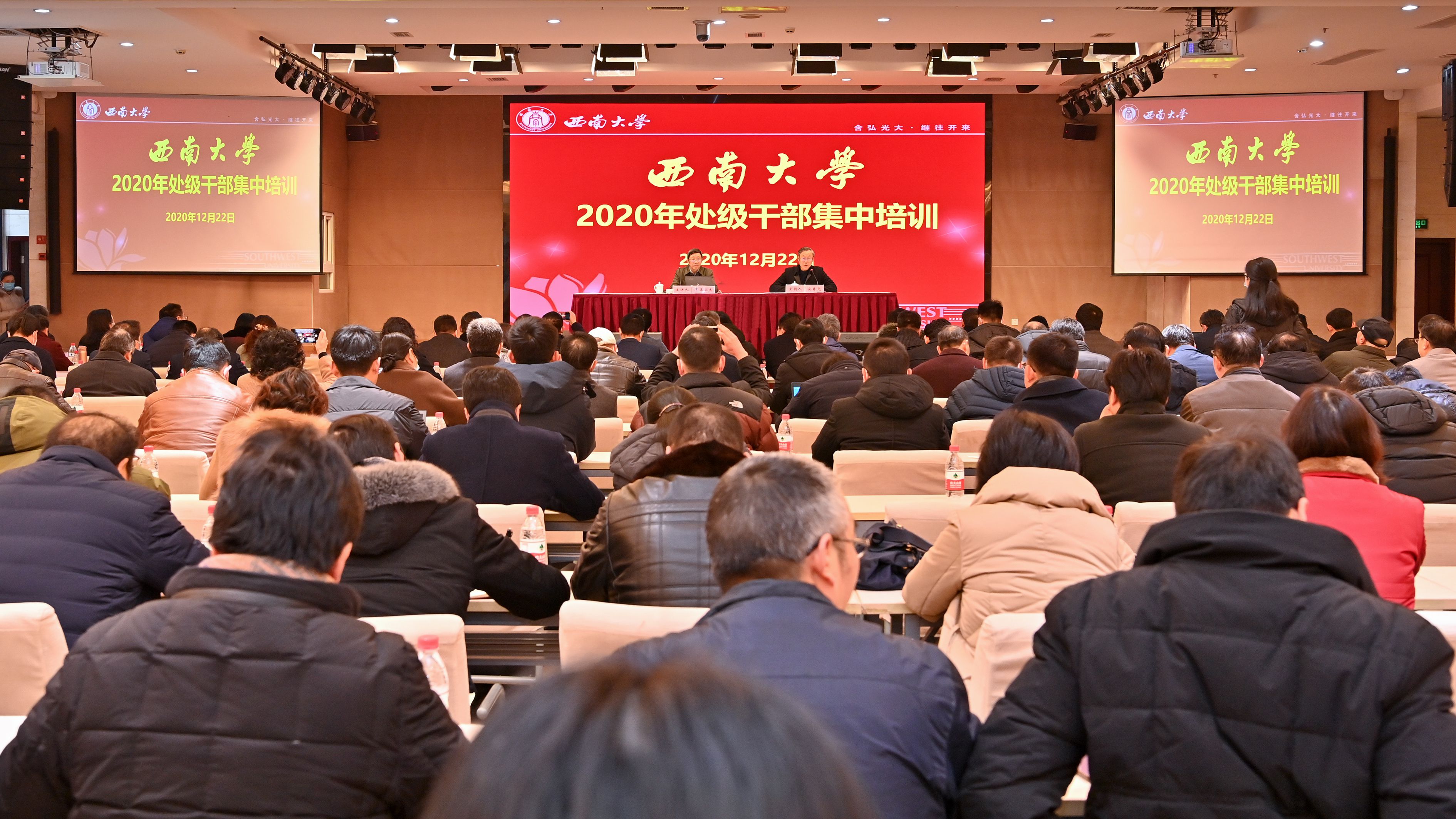 12月22日下午,重庆市委教育工委专职副书记覃正杰应邀在国际学院报告厅为全校处级干部作《德乃官之本 为官先修德》的专题报告。会议由学校党委副书记安春元主持。
