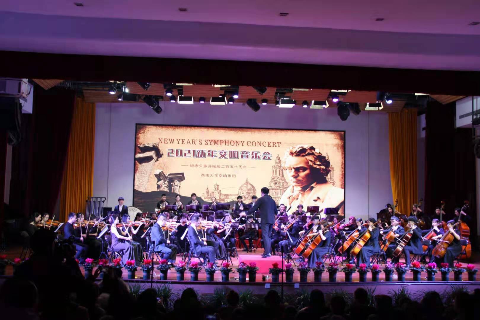 12月29日晚,由音乐学院承办的学校迎新年活动之“2021新年交响音乐会”在音乐演奏厅举行,学校近300名师生欢聚一堂,共享新年华美乐章。