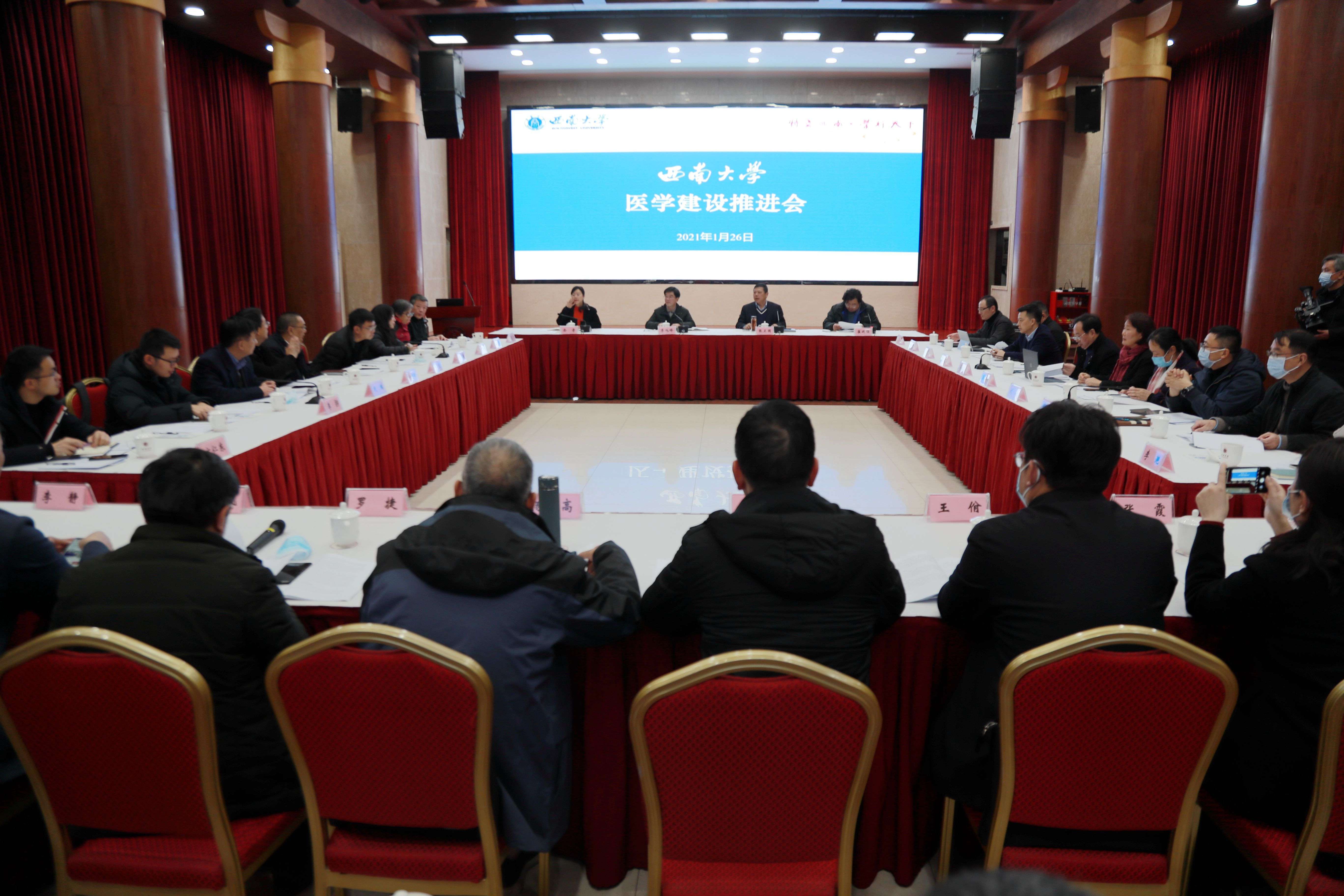 1月26日下午,学校召开医学建设推进会。学校党委书记李旭锋、校长张卫国、副校长崔延强,重庆市人口和计划生育科学技术研究院院长余奇出席会议,附属医院(市九院)、附属公卫医院、附属心理医院等单位负责人,学校相关职能部门和校医院负责人、医学研究院及下设中心相关负责人等参会。会议由崔延强主持。