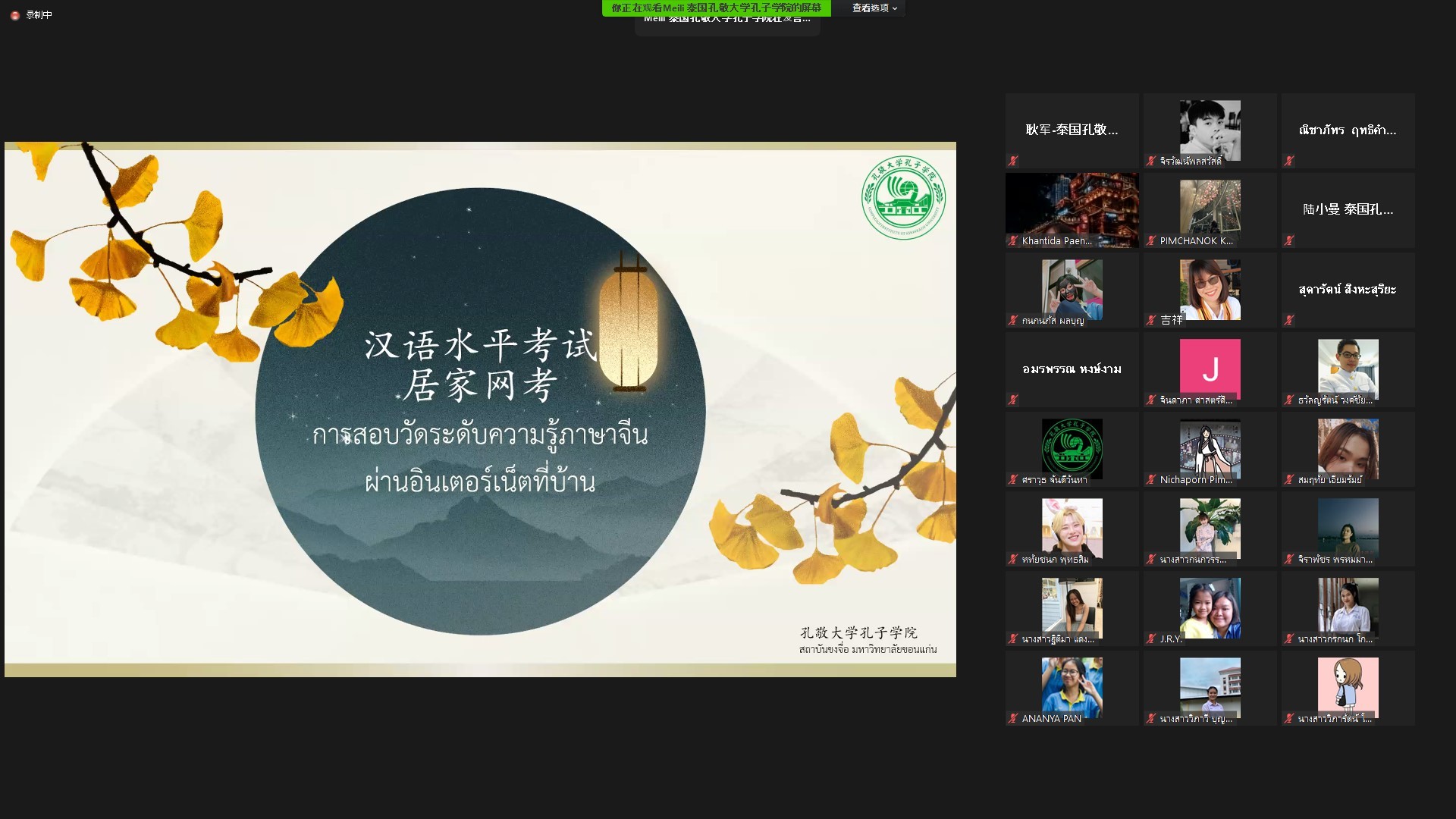 近日,学校共建孔敬大学孔子学院举办2021年奖学金宣讲会暨HSK居家网考说明会。本次会议通过线上会议平台进行,泰东北多所院校的中文负责人及近百名同学参会。