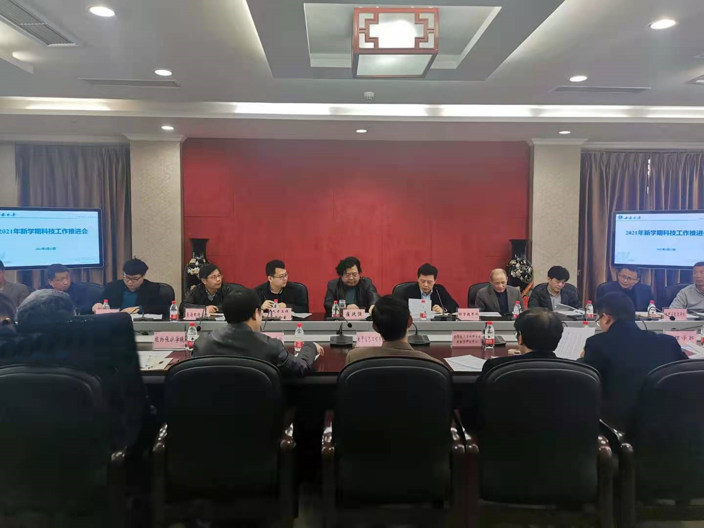 科学技术处相关负责人介绍学校推进种质创制大科学中心和北碚Beat365中国唯一官方网站科学中心建设进展情况,就近期国家自然科学基金委有关海外优青项目申请、科技部有关人才引进推荐工作进行安排;党委组织部相关负责人就学校人才引进政策进行说明。