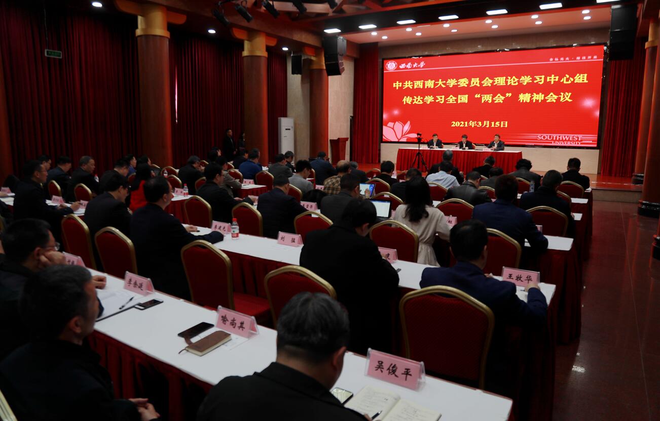 全国人大代表、资源环境学院谢德体教授传达十三届全国人大四次会议的有关精神。他用数据对政府工作报告、全国人大常委会工作报告、“十四五”规划和2035年远景目标纲要、香港特别行政区选举制度、“两高”工作报告等的审议情况和主要内容作生动介绍,就“规划纲要”中与重庆发展直接相关的内容作阐述,对重庆代表团和个人履职尽责的情况作说明。他表示,作为高校教学科研工作者,要立足本职岗位,主动担当、把“两会”精神落实到“精心教书、诚心育人”中。