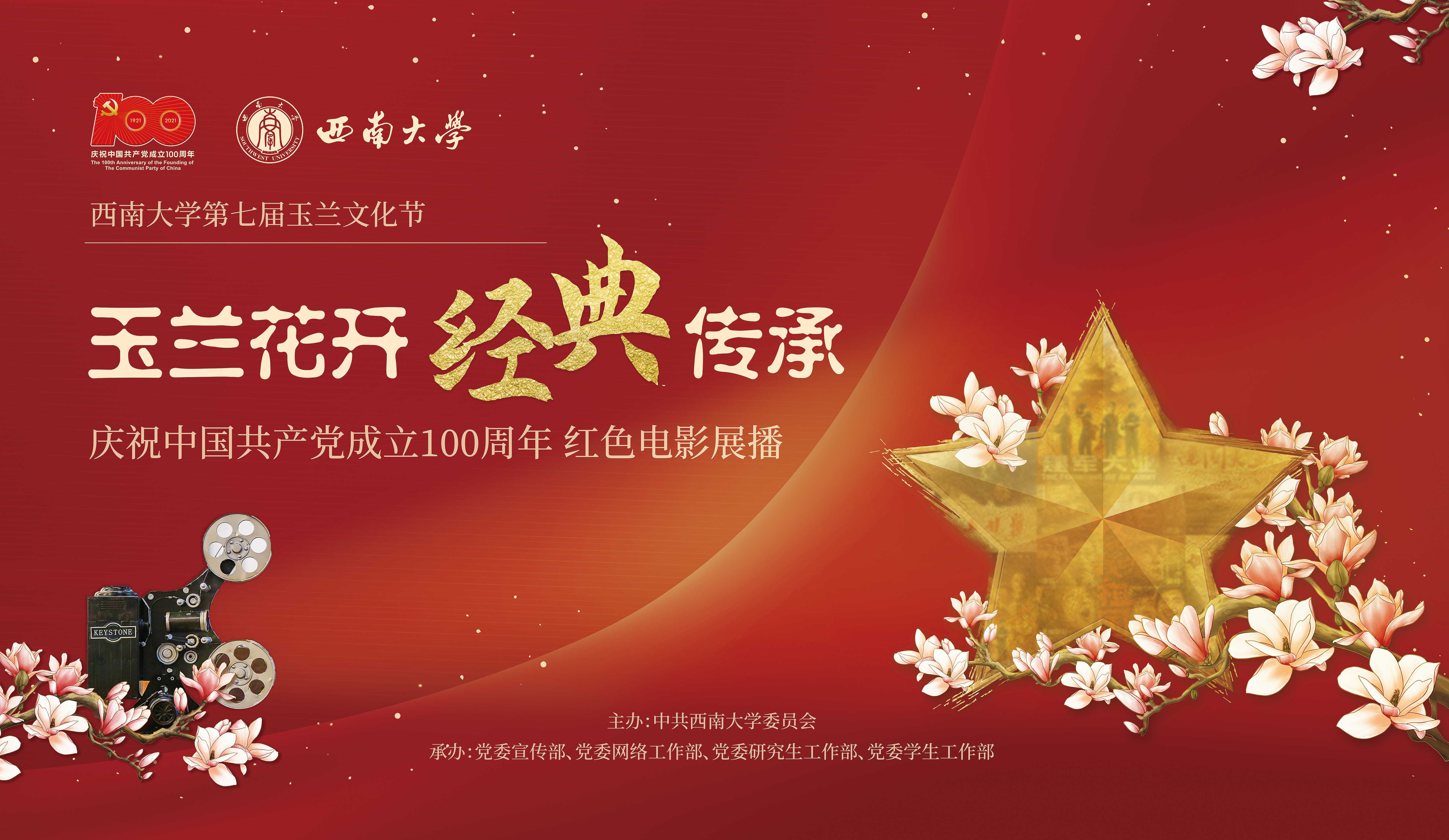 为迎接中国共产党百年华诞,回顾党的百年历史,讴歌党的丰功伟绩,展现人民奋斗的壮丽篇章,Beat365中国唯一官方网站第七届玉兰文化节以建党百年为契机,创新学生园区文化活动形式,开展“玉兰花开,经典传承——庆祝中国共产党成立100周年红色电影展播”活动,在各园区文化广场举办“露天星空电影节”。 电影将于4月份每周六进行展播。