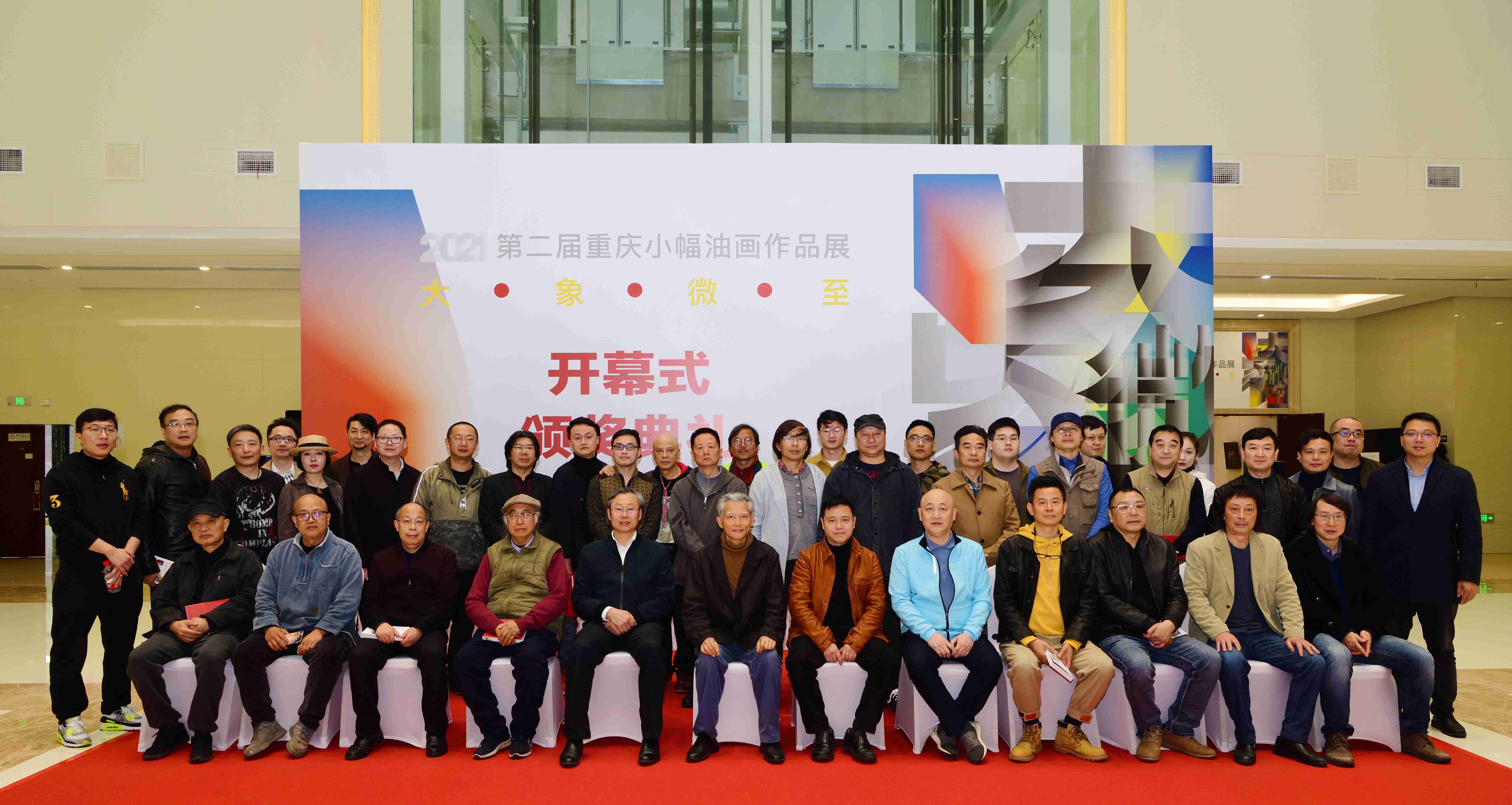 4月7日下午,由重庆市油画学会与学校共同主办的“大象微至-2021第二届重庆小幅油画作品展”在学校博物馆正式开幕。重庆市文联党组书记陈若愚,中国美术家协会副主席、重庆市美协主席、四川美术学院院长庞茂琨,学校党委副书记安春元,重庆市油画学会会长翁凯旋出席开幕式并讲话。