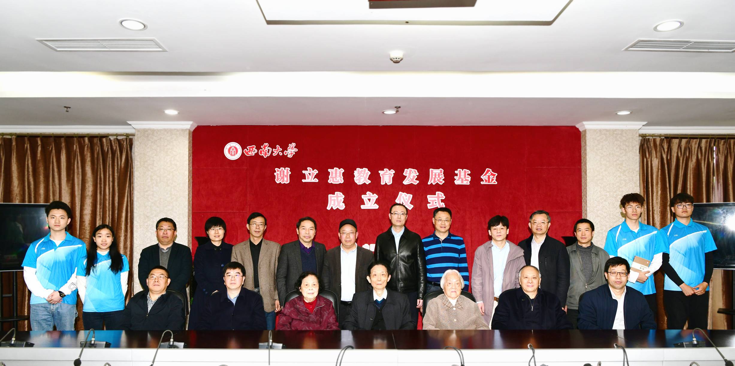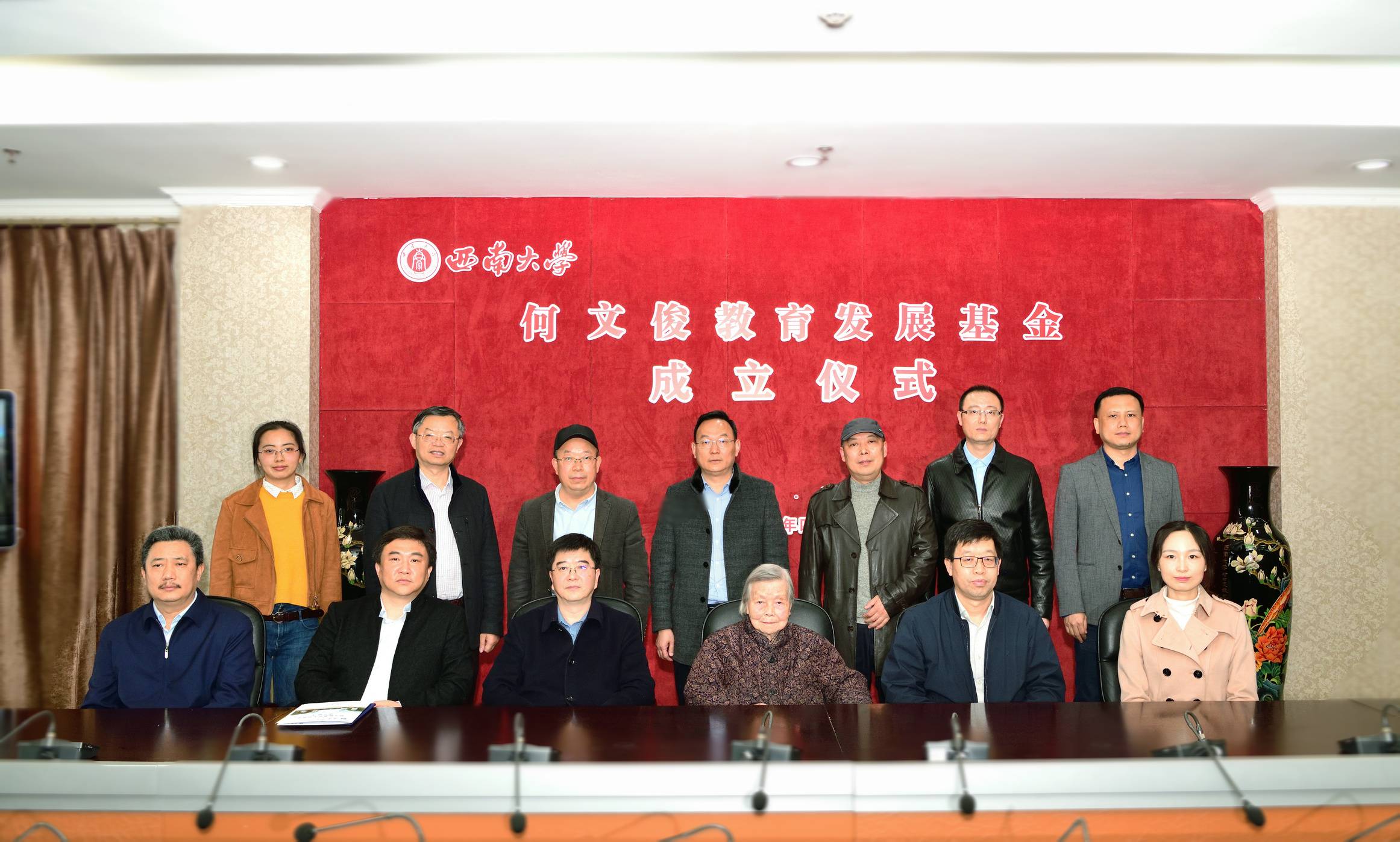 4月16日下午,何文俊教育发展基金成立仪式在行署楼五会议室举行。何文俊先生夫人、97岁高龄的田筱君女士,亲属代表刘斌立先生、冯正贞女士出席仪式;学校党委书记、教育基金会理事长李旭锋;副校长、教育基金会副理事长赵国华及相关部门主要负责人出席仪式。对外联络办公室主任、教育基金会秘书长龚常智主持仪式。