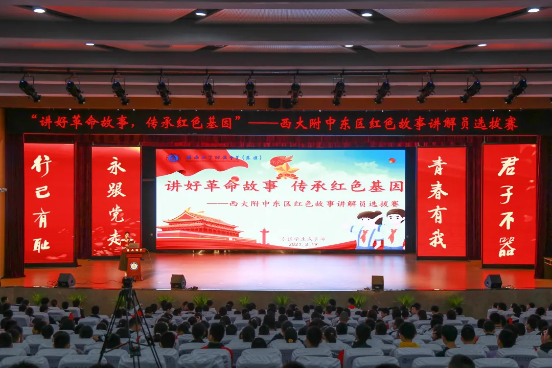 3月19日,附属中学(东区)举行了 “‘永跟党走,青春有我’庆祝建党百年系列活动”之 “小萝卜头”红色讲解员选拔赛,引导广大学生深入开展以党史为重点的“四史”教育。通过此次活动坚定了学校师生的理想信念,为努力成长为担当民族复兴大任的时代新人奠定了坚实的思想基础。