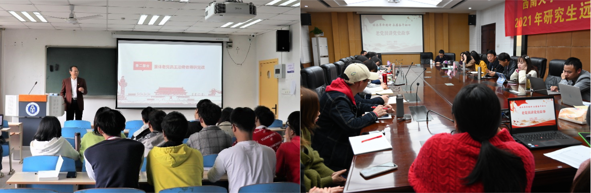 此外,许子清、向雪琴、林元吉、郭昌瑜同志也分别赴文学院、外国语学院、蚕桑纺织与生物质科学学院、历史文化学院讲述了党史故事。