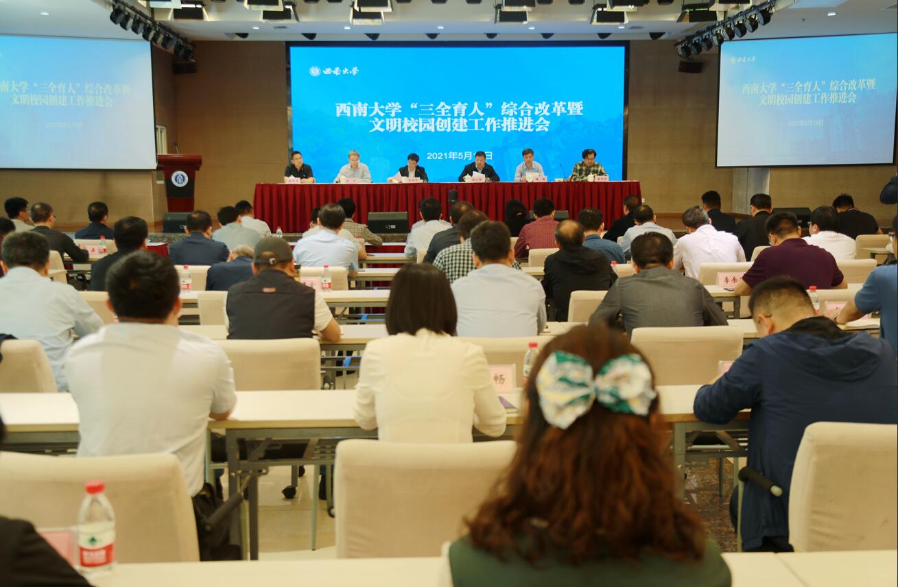 张卫国指出,各单位要提高政治站位,严格贯彻落实会议精神,进一步明确目标任务、建立责任清单、明晰工作职责、强化工作举措。要推进联动协同,完善一体化工作机制,实现教育、管理、服务多条战线齐头并进;要强化重点突破,打造西大特色育人品牌,分领域打造一批兼具创新性、示范性、可复制、可推广的精品案例,争创全国文明校园和教育部“三全育人”综合改革试点高校,以优异成绩迎接建党100周年!