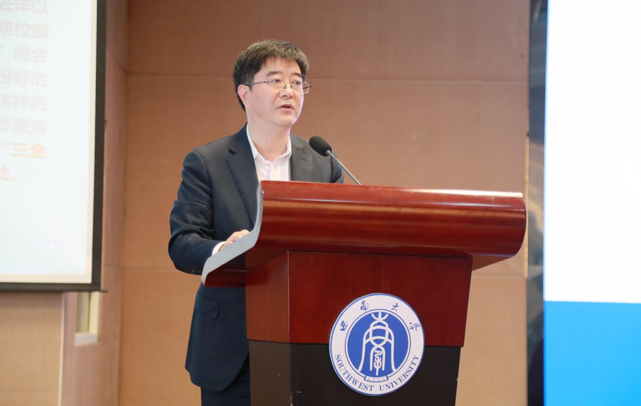 学校党委副书记潘洵作“三全育人”综合改革暨文明校园创建工作报告,他指出,学校深入推进“三全育人”综合改革和文明校园创建工作,强化顶层设计、理顺体制机制,聚焦重点工作、稳步推进落实,注重品牌建设、打造示范项目,取得了阶段性成果。报告对学校下一步工作作了具体部署,学校将以即将印发的《“三全育人”综合改革实施方案》《文明校园创建工作方案》为统领,全面推进“十大行动计划”,实施五大聚能工程,实施六大引领行动,统筹推进“三全育人”综合改革和文明校园创建工作,奋力开创大思政、大文化工作之新局,着力打通育人“最后一公里”。