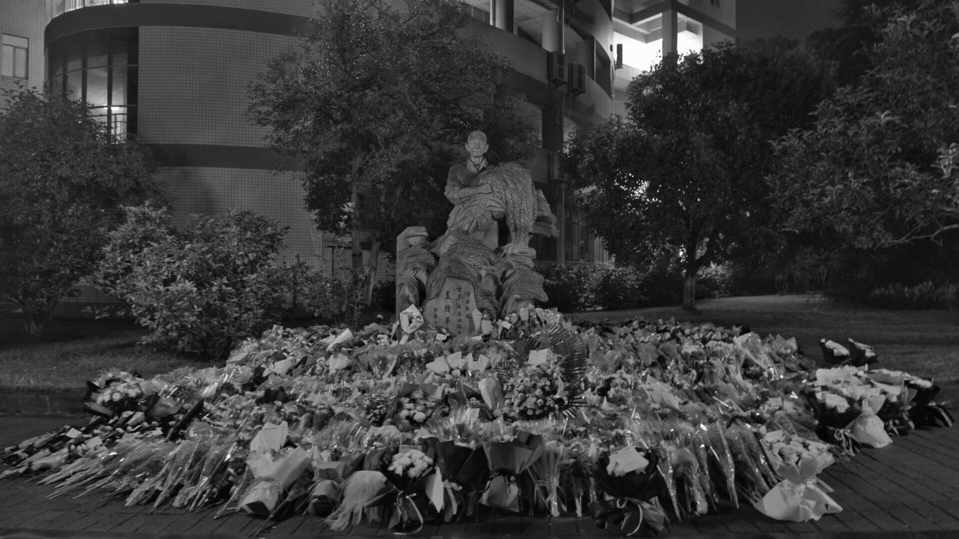 泪光盈盈中,我在思考一个词“为什么”——为什么师生们会自发买空所有花店的菊花去塑像前祭奠?为什么那么多的人们自发夹道送别?