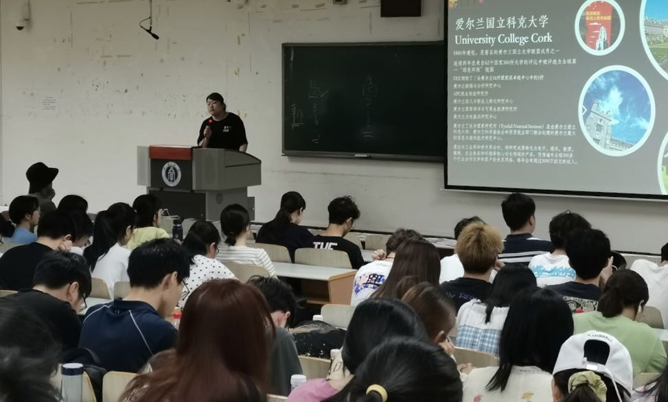宣讲中,姜莹对爱尔兰国情和科克大学进行详细介绍。从相关专业的角度,对学期学年访学项目、本科生3+1项目和硕士1+1+1双学位项目等进行深入细致的讲解,分享科克大学学生在食品科学、电子电气、计算机技术、金融、生物科学、信息产业等领域的优势和就业前景。