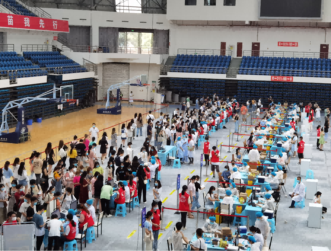 参加此次疫苗接种的人员为4月18日至4月22日下午在学校中心体育馆集中接种了疫苗第一针剂的师生,此外4月20日以前在医院接种的人员也可前来进行第二针剂集中接种。