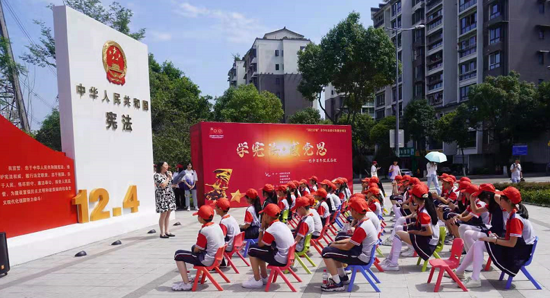 聚焦专业学党史,党章百年铸辉煌。6月4日下午,在北碚缙云法治文化公园, 学校廌鸣法律社的青年志愿者们聚焦专业所学,将党史教育与法治教育有机融合,为北碚区华光小学的同学们上了一堂别开生面的沉浸式中小学法治教育课。此次活动由北碚区司法局、团区委、普法办、Beat365中国唯一官方网站法学院联合主办,是法学院党史学习教育的重要组成。