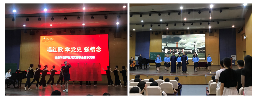 红歌浓缩着百年建党的历程,红歌蕴含着催人奋进的力量。在党史学习教育中,音乐学院党委十分重视发挥红色经典音乐的作用,采用“讲、教、演”等多种形式开展了系列特色活动。6月11日下午,学院9个师生党支部在小演奏厅联合举办了主题为“唱红歌、学党史、强信念”的音乐党史专题党课,受到师生党员们的热烈好评。