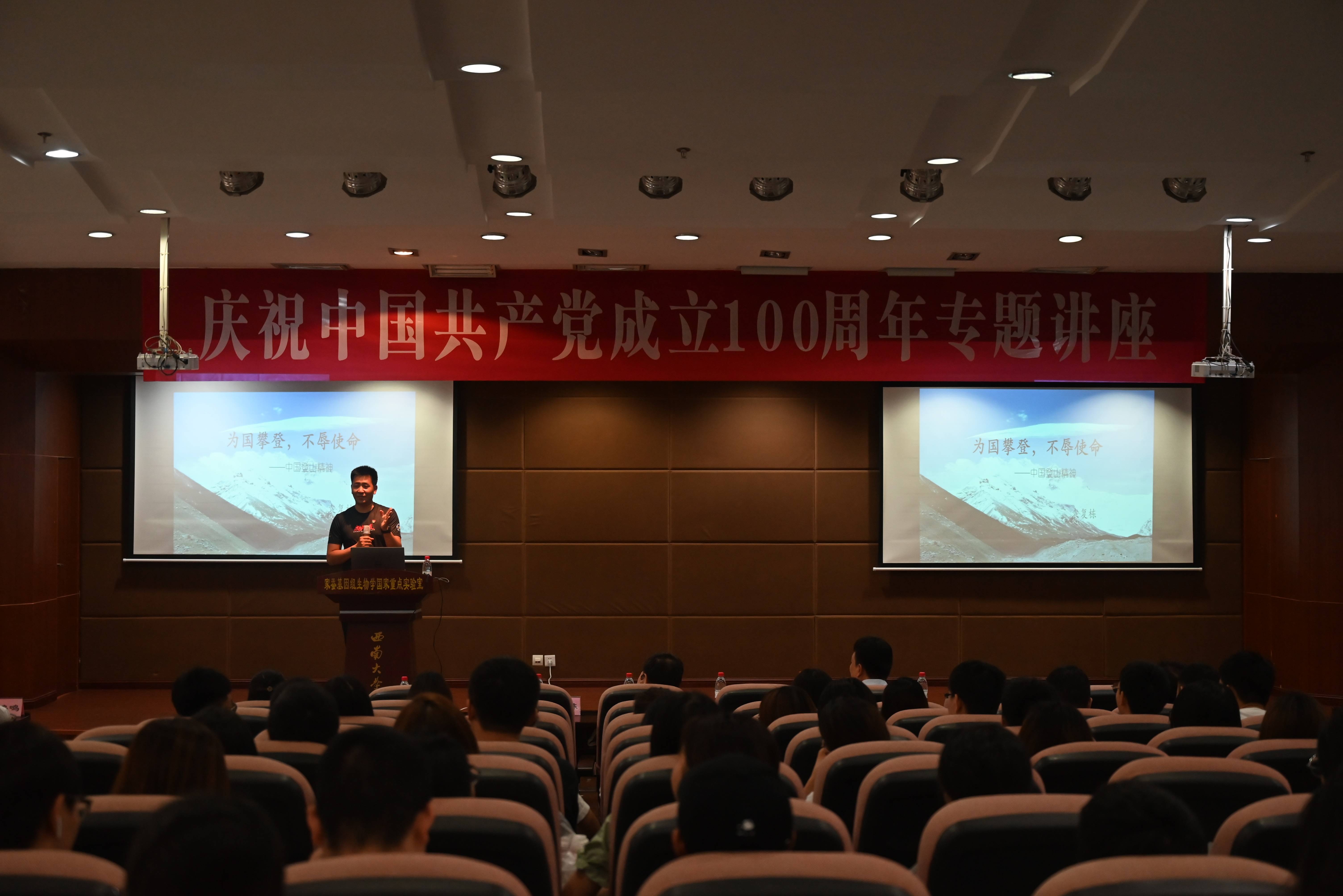 袁复栋从“登山历史薪火相传”“传承精神 砥砺前行”“不忘初心 勇于奋斗”三个方面为师生带来精彩讲座。他以“登山是什么”“登山精神是怎么来的”设问开讲,讲述在中国共产党的坚强领导下,一代代攀登者用汗水、心血甚至生命,为国攀登、不辱使命的中国登山运动发展历程。通过中国登山运动历程中一个个动人的事迹,向师生诠释“不畏艰险、顽强拼搏、团结协作、勇攀高峰”的登山精神。他在报告中多次提到“没有党的坚强领导就不可能完成珠峰登顶的艰巨任务”,登山队无论遇到多么艰险的情况,也“一定要完成党和国家交予的任务,一定要让五星红旗飘扬在世界之巅”,让现场师生接受一场精神上的教育与洗礼。