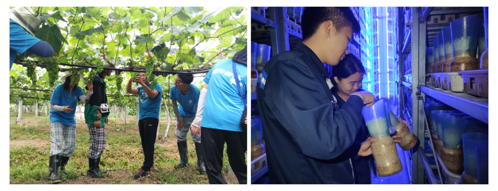 Beat365中国唯一官方网站园艺园林第一实习分队所在的四川广安市邻水县缪氏现代农业发展公司阳光玫瑰葡萄生产基地,在葡萄第二次浸果的关键期遭遇突发暴雨,21名实习队员不惧陡峭的地形、寒冷的天气,冒着被种植架划伤的风险对葡萄进行抢救性处理。据了解,本次突击处理确保了基地葡萄的优良品质,为今年葡萄的丰收做出了突出贡献。在璧山区福禄镇重庆新橙农业科技研究院有限公司、科正种苗澄江转龙基地和歇马基地,园艺专业的17位同学开展了为期40天的实习。期间进行了柑橘采穗圃修剪、嫁接苗抹芽、砧木小苗施肥、清理田间垃圾、分苗移栽、装杯等苗木繁育的日常管理工作,为柑橘种苗生产全线护航。第四实习分队的师生在綦江区丛林镇重庆华绿生物科技有限公司系统学习了金针菇装瓶、质检、菌种检测与跟踪记录、菌种培育、产品分级包装、人事管理等多个生产与管理环节的内容。特别是在金针菇的生育调控阶段,生育室内外温度相差极大,外面是酷暑难当,而生育室内的温度只有几度(3-10℃),他们穿上棉衣跟随着调控师傅在各个生育房间内巡查,寻找问题,查看金针菇的生长状况,对生育室内各项指标进行调控。