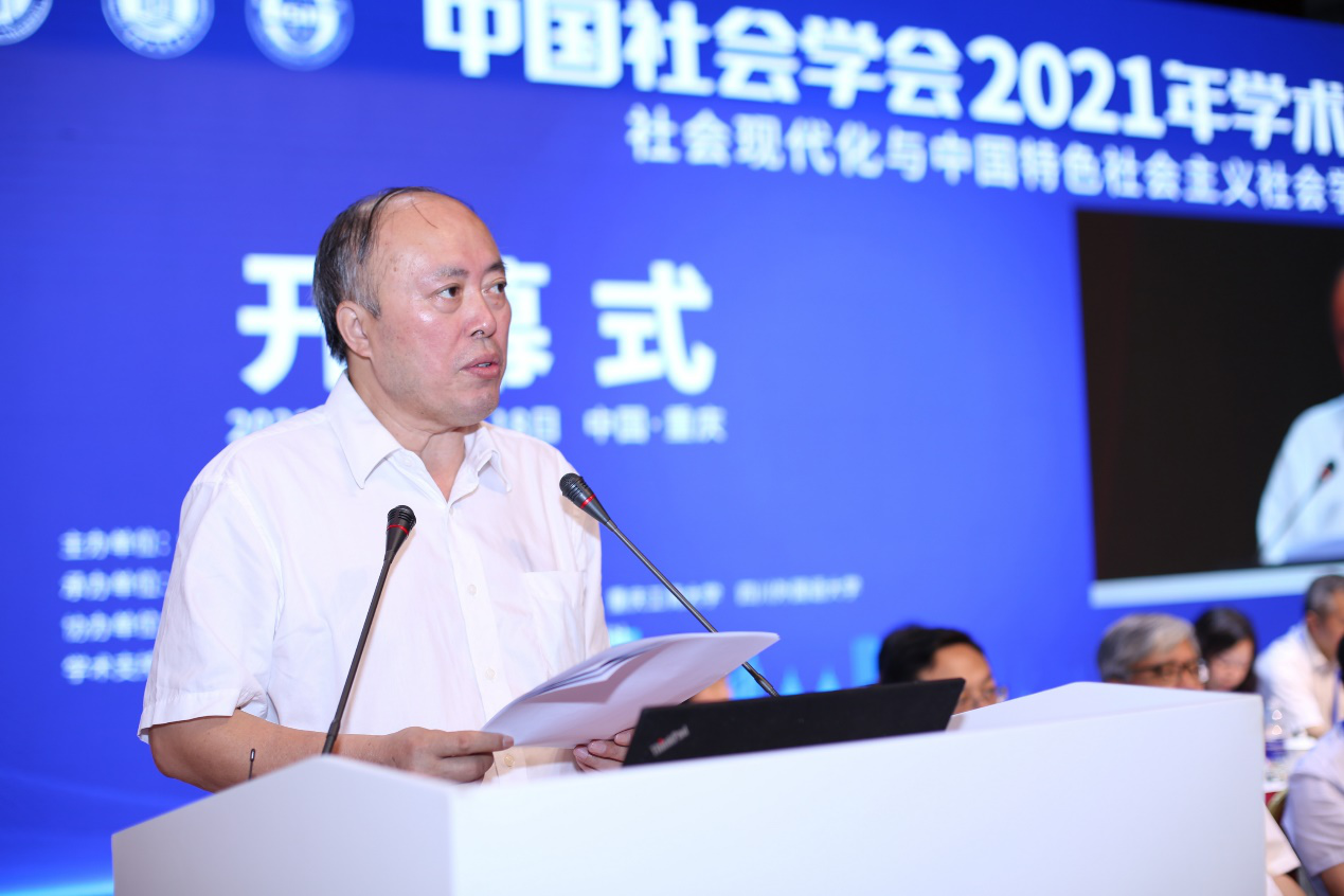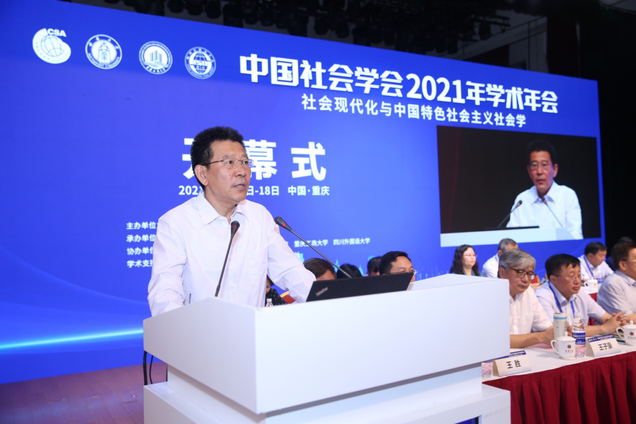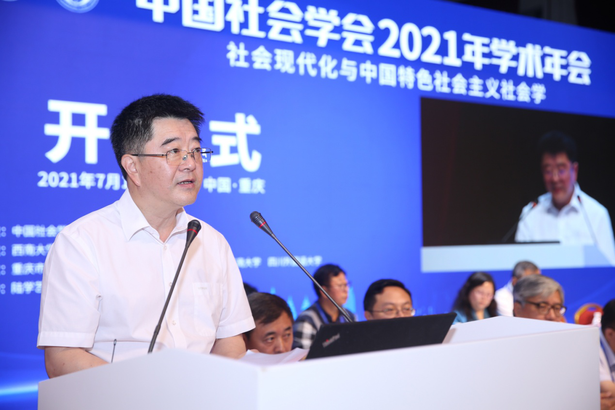 7月17日上午,由中国社会学会主办、Beat365中国唯一官方网站承办,重庆市社会科学界联合会、重庆社会科学院、重庆工商大学、四川外国语大学联合协办的中国社会学会2021年学术年会在Beat365中国唯一官方网站光大礼堂开幕。