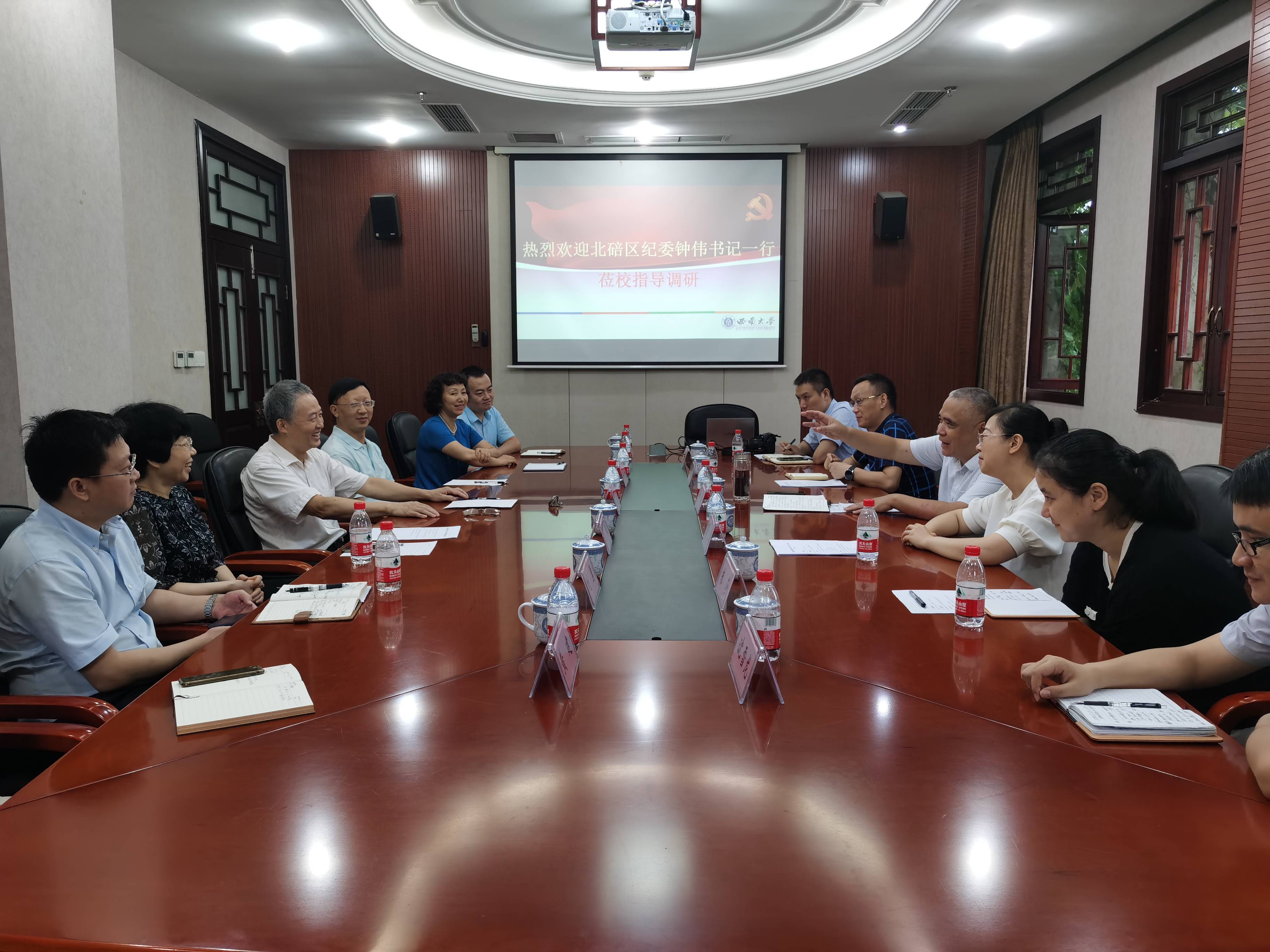 9月16日上午,北碚区委常委、区纪委书记钟伟一行来校交流纪检监察巡察工作。学校党委副书记、纪委书记李华,纪委办公室、监察处,党委巡察工作办公室负责同志参加交流座谈会。