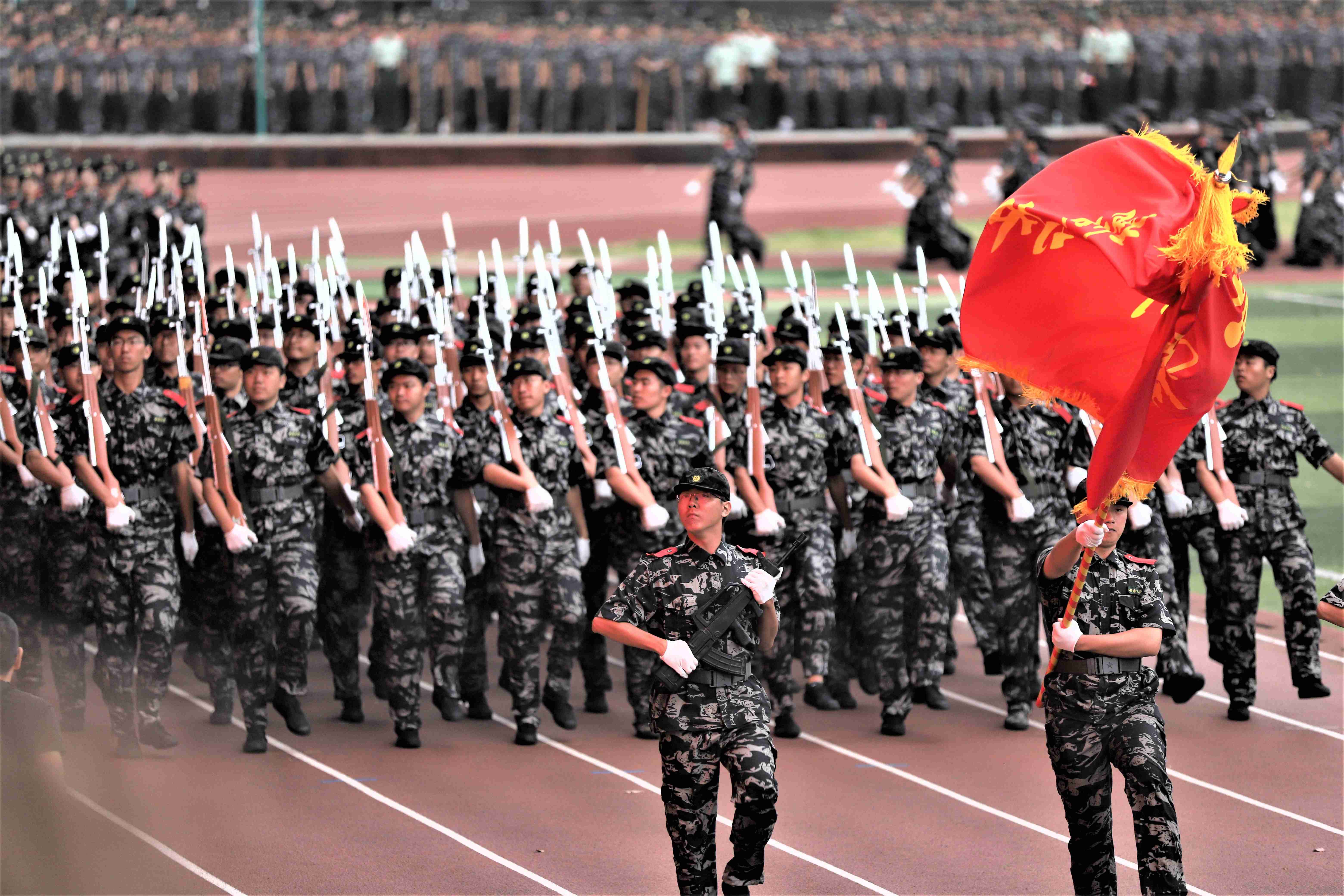 据悉,学校2021级本科生军训从2021年9月13日起,通过分散军训和集中军训两个阶段,按照全员参与、阶段推进、学练结合、基础实用的原则有序组织开展。集中军训阶段,10000余名参训学员全员参与、刻苦训练,认真开展队列动作、分列式、特种战术、心理健康操等科目训练,并认真开展国防教育、人民防空教育、部队光荣传统教育等科目的线上学习活动。在全学年内,学校还将陆续开展内务卫生整理、早操出勤训练、消防技能训练、自救互救训练、考核比武等学习实践活动。帮助新生培养良好学习生活习惯,掌握各项应急技能。