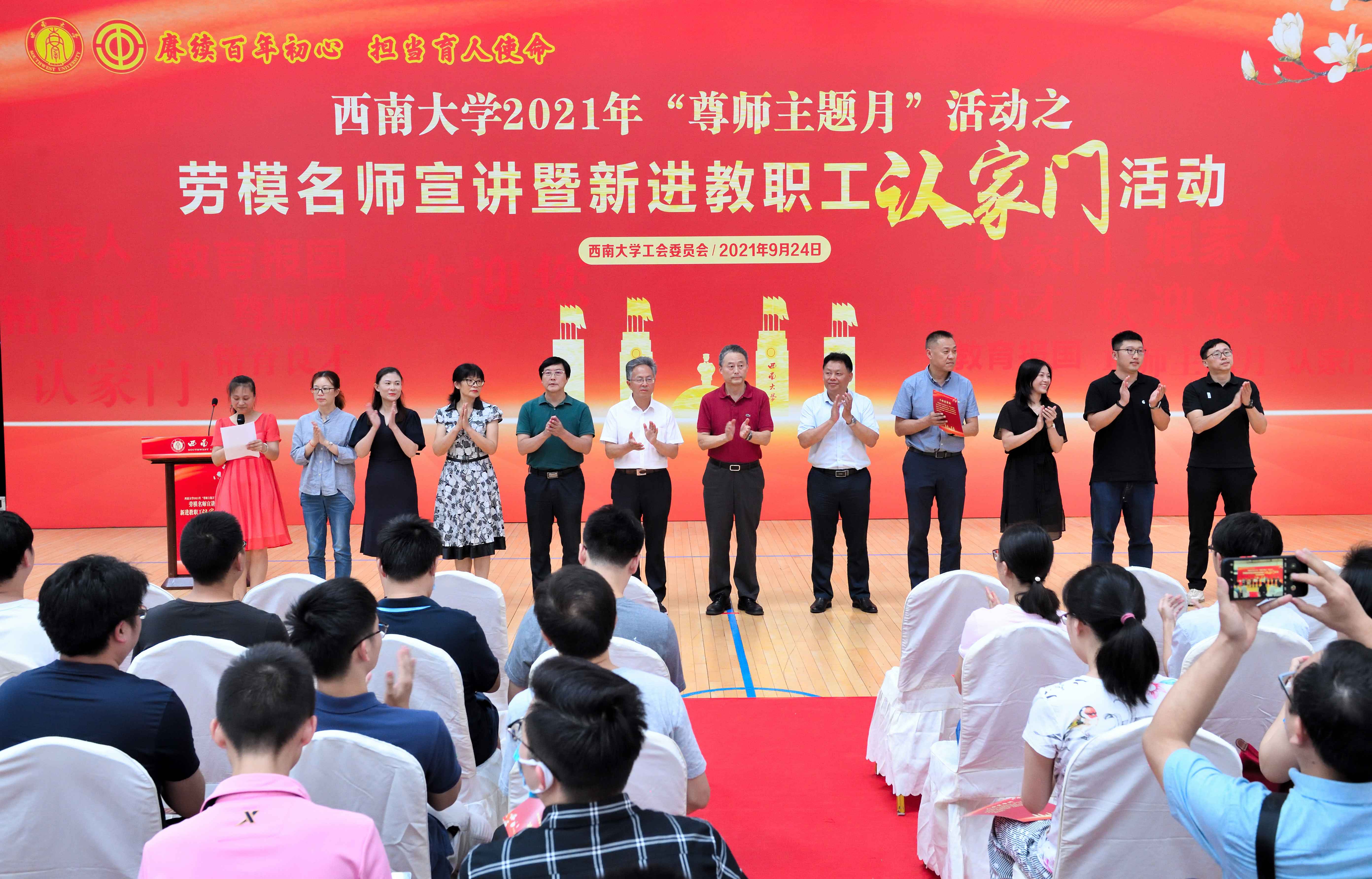 9月24日下午,校工会在学校中心体育馆,举办“赓续百年初心,担当育人使命”为主题的劳模名师宣讲暨新进教职工认家门活动。学校党委副书记、纪委书记李华出席活动,部分职能部门和学院相关负责人,各二级单位工会主席以及2021年新进教职工190余人参加活动。