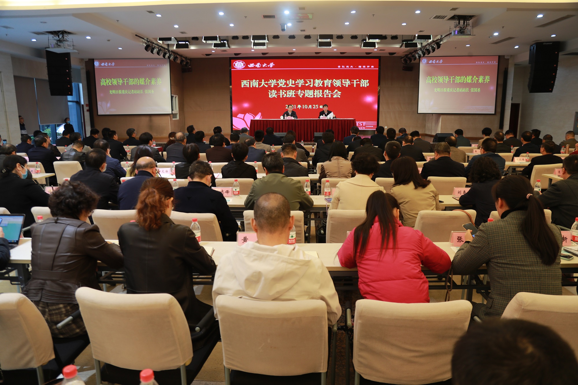 10月25日下午,学校在国际学院报告厅召开党史学习教育领导干部专题读书班第三场专题报告会,专题学习高校领导干部的媒介素养。全体在校校领导、副处级以上领导干部参加学习会,学校党委书记、党史学习教育领导小组组长李旭锋主持会议。