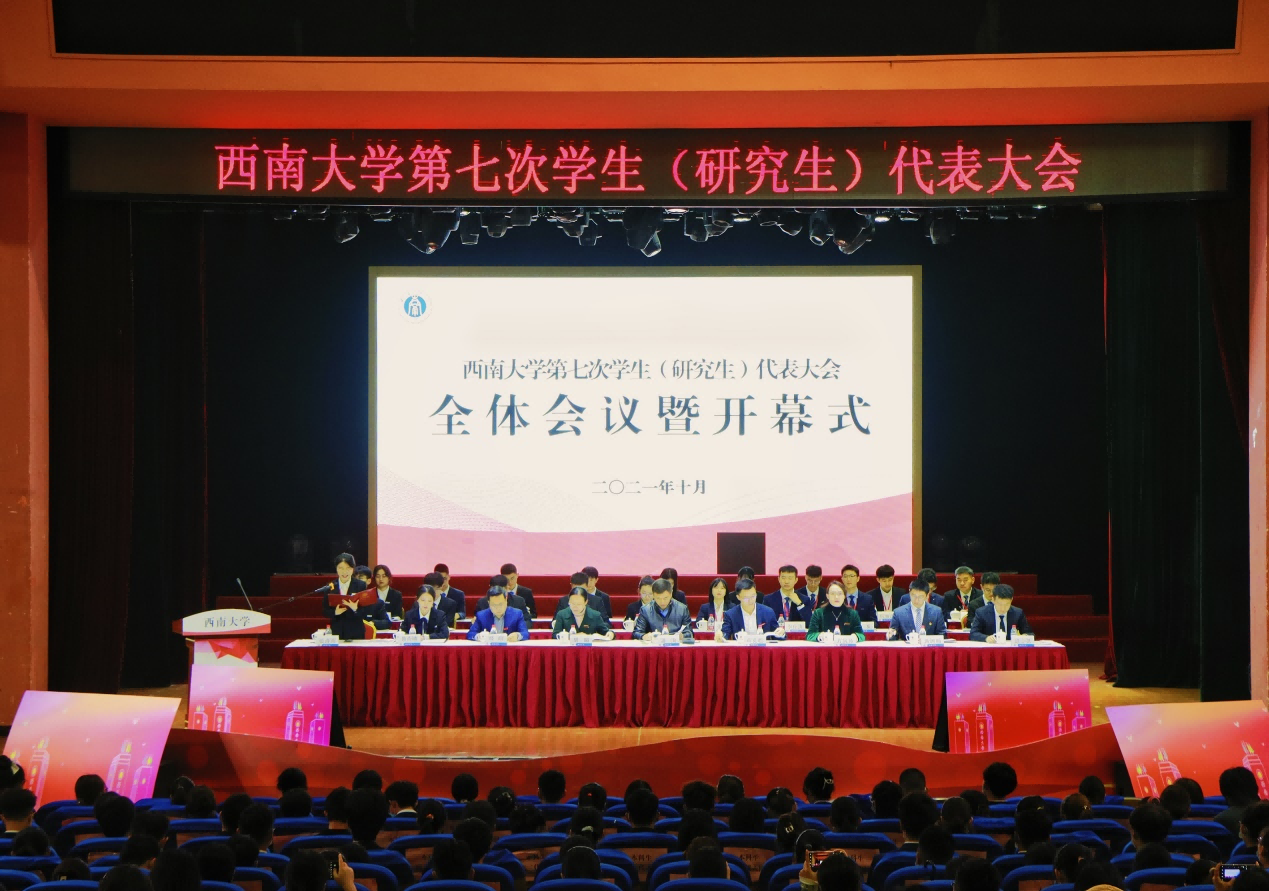 百年正风华,青春心向党。10月29至30日,学校第七次学生(研究生)代表大会顺利召开,选举产生了新一届学生(研究生)委员会委员和主席团成员。学校党委副书记潘洵出席大会开幕式,市学联驻会执行主席黄鹏翰到会祝贺,党委研工部、党委学工部、校团委等部门负责同志,全体专兼职团干、学生代表等共计500余人参加。