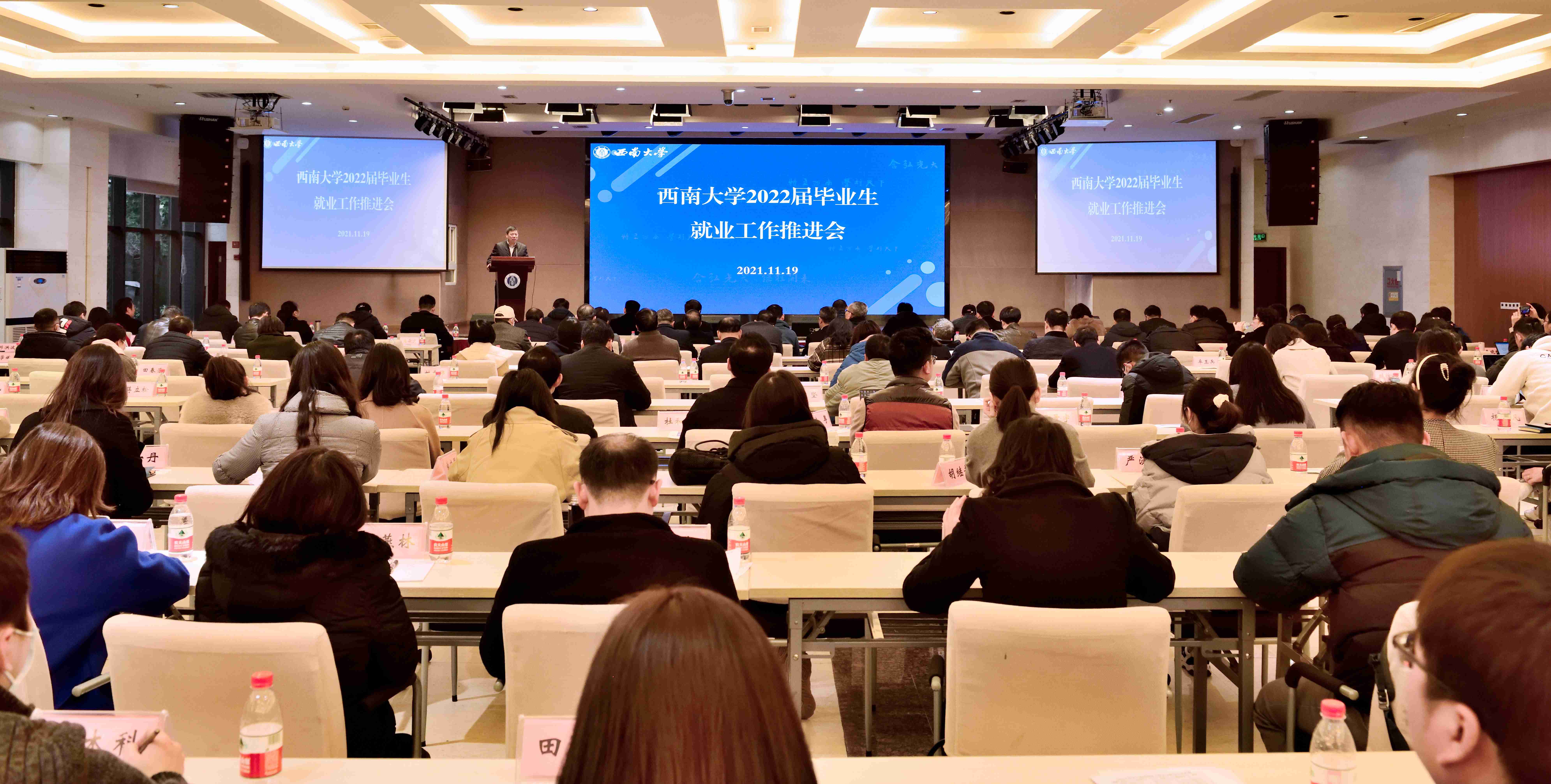 11月19日下午,教育部、人力资源社会保障部召开2022届全国普通高校毕业生就业创业工作网络视频会议,教育部部长怀进鹏、人力资源社会保障部副部长李忠出席会议并讲话,教育部副部长翁铁慧主持会议。学校在国际学院报告厅设分会场,校长张卫国、学校党委副书记潘洵、学校毕业生就业创业工作领导小组成员单位负责人、各培养单位主要负责人、党委相关负责人、毕业班辅导员、就业工作部门人员170余人参加视频会议。