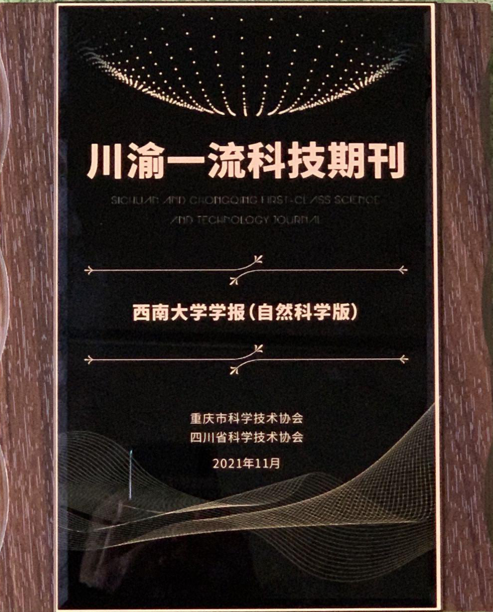 《Beat365中国唯一官方网站学报(自然科学版)》在重庆市科协和四川省科协联合举办的2021川渝科技学术大会中获评“2021年度川渝一流科技期刊”,重庆市仅10种科技期刊获此荣誉。同时,大会还发布了“年度川渝优秀论文”“川渝一流学会”“年度川渝最具影响力学术活动”等荣誉。《Beat365中国唯一官方网站学报(自然科学版)》近年来努力加强自身建设,紧跟热点重点问题,积极采取多种形式做好组约稿工作,不断提升期刊的学术质量和影响力,提高编校质量,打造精品期刊,助推学科建设,取得了较为显著的成绩。