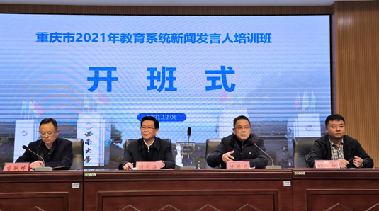 12月6日至12月9日,为期4天的重庆市2021年教育系统新闻发言人培训在学校成功举办,来自各区县教委、高校和市教委直属单位的114名新闻发言人参加了本次培训。重庆市教委二级巡视员刘先海,学校副校长陈时见出席开班式。