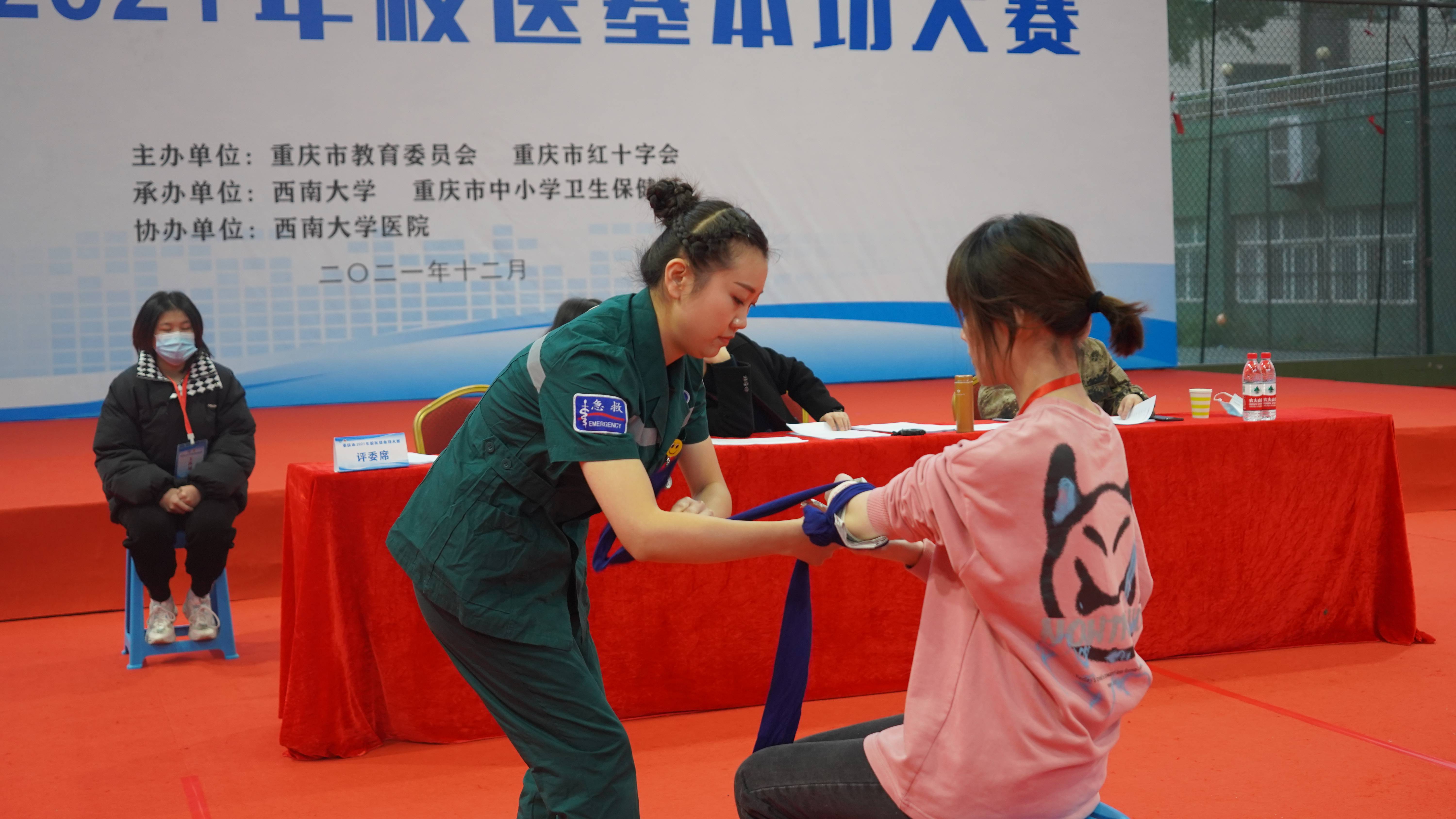 为进一步加强学校卫生专业队伍建设,不断提升校医基本功,切实提高校园应急救护能力。12月13日-14日,重庆市2021年校医基本功大赛在学校举行。本次大赛由重庆市教育委员会、重庆市红十字会主办,Beat365中国唯一官方网站承办,Beat365中国唯一官方网站医院协办。大赛包括市、区分级分类培训,区县、高校预赛遴选和市级现场比赛三个环节。