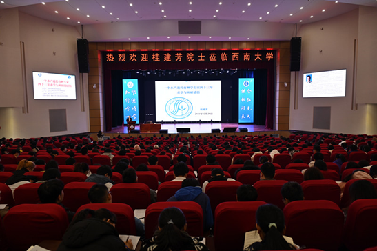 报告结束后,桂建芳为师生答疑解惑,寄语西大学子不忘初心、持之以恒、携手并进,踏浪学科前沿,添展璀璨蓝图。