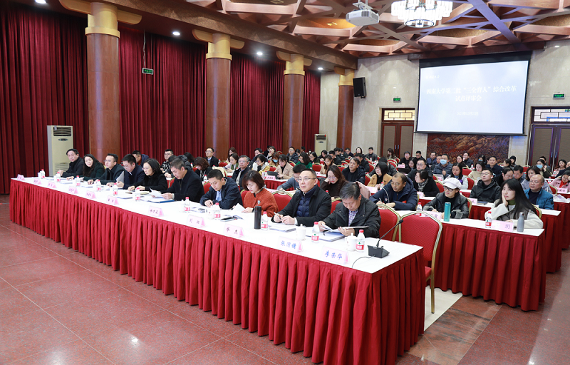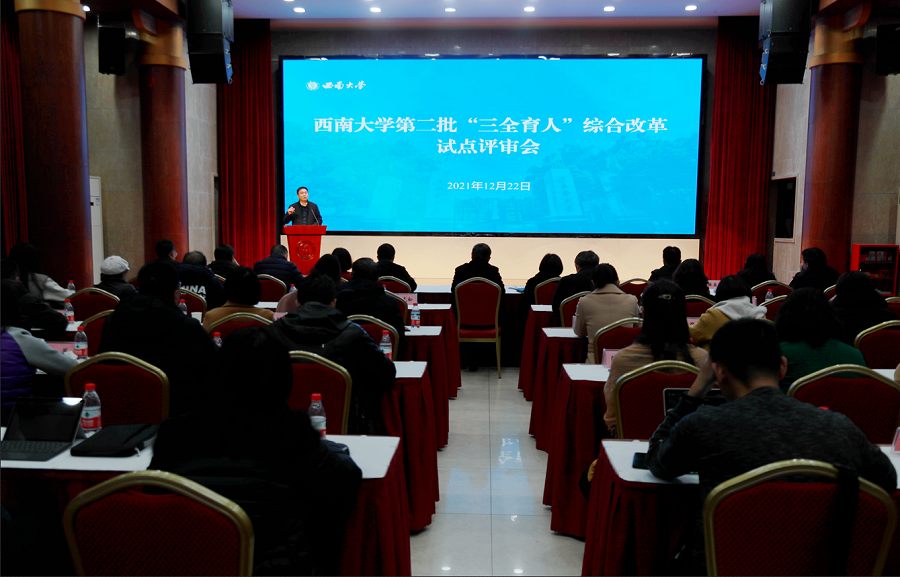12月22日下午,学校在东方红会议厅召开第二批“三全育人”综合改革试点评审会,学校党委副书记潘洵和来自校内外的评审专家出席会议,学校思想政治工作领导小组成员、“三全育人”综合改革试点申报单位主要负责人、学院(部)党委副书记参会,会议由党委宣传部部长李荣华主持。