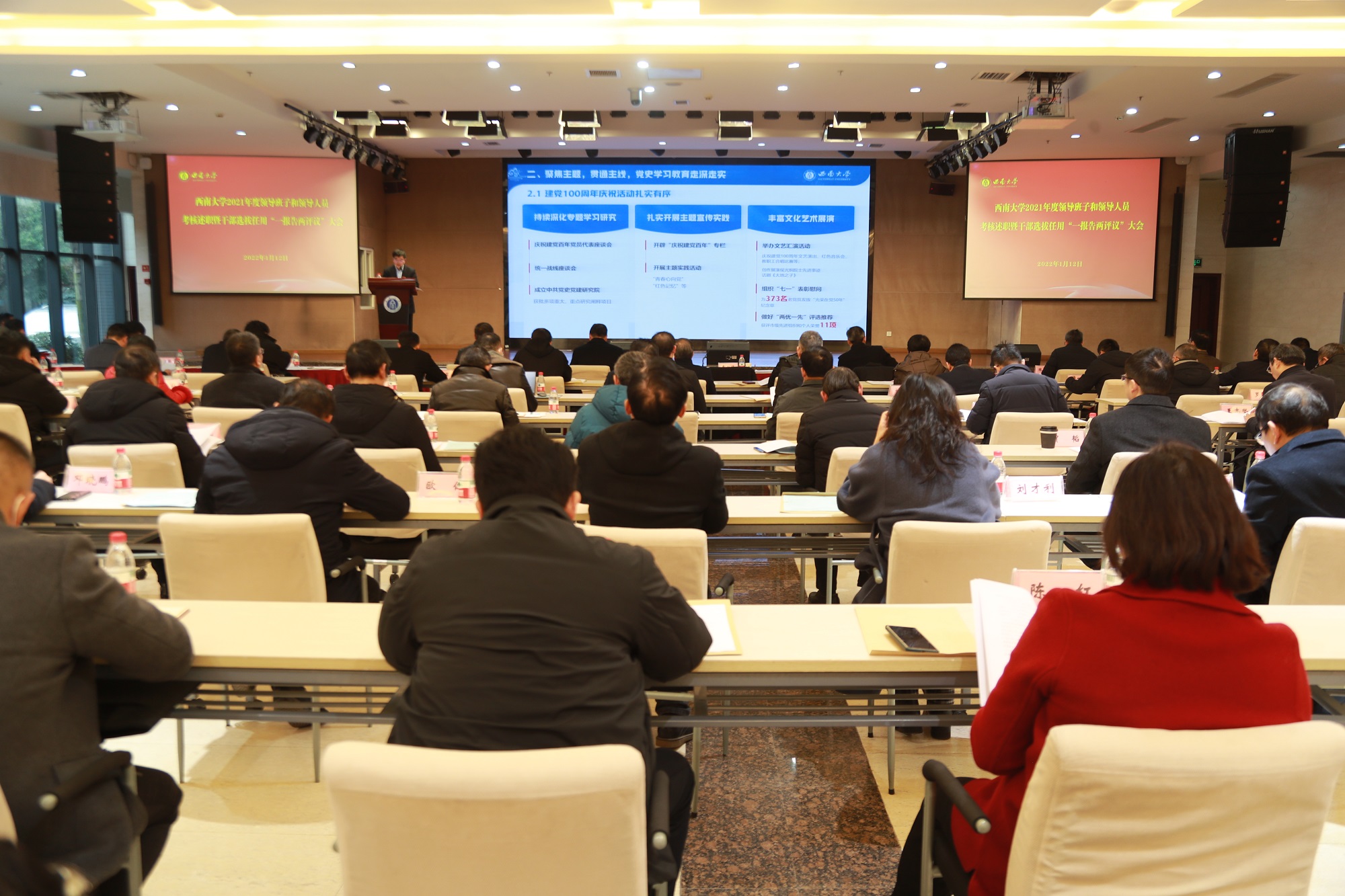 1月12日下午,学校在国际学院报告厅召开2021年度领导班子和领导人员考核述职暨干部选拔任用“一报告两评议”大会。学校领导班子成员,党委委员、纪委委员,各单位党政主要负责人,中层副职代表和其他各方面代表参加会议。会议由党委书记李旭锋主持。