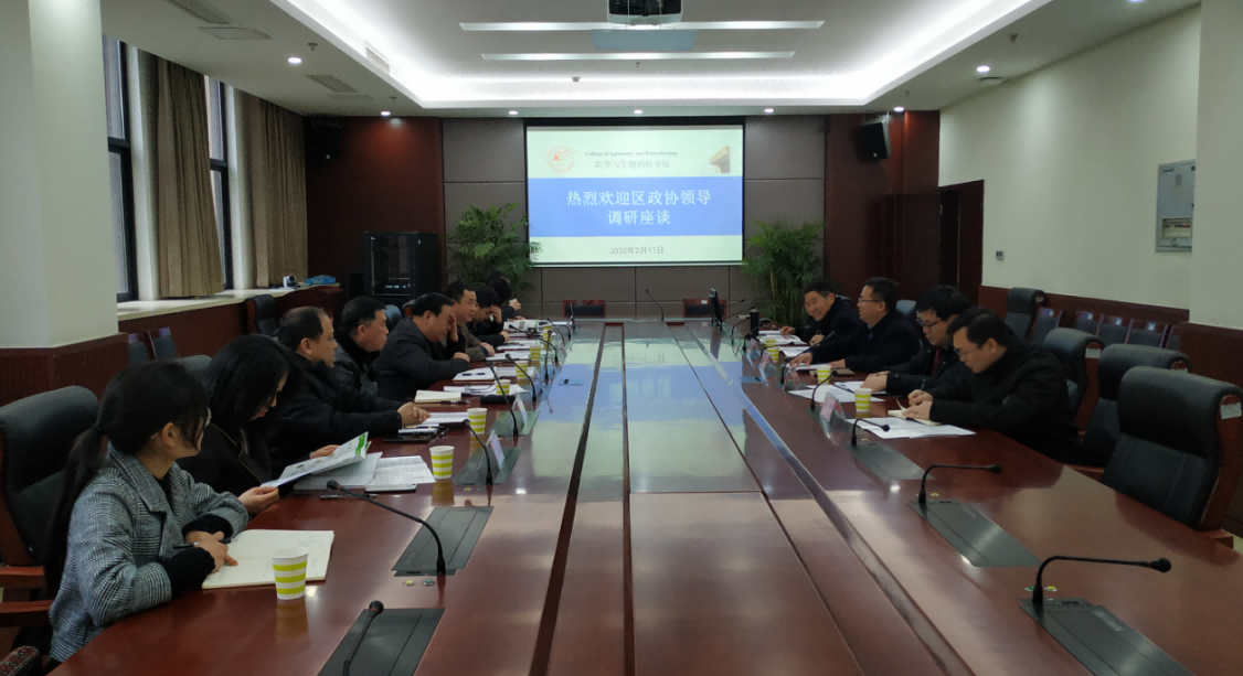 2月17日,北碚区政协党组成员、副主席华祖军一行来校开展校地合作调研座谈。学校农学与生物科技学院、工程技术学院相关负责同志参加座谈会。