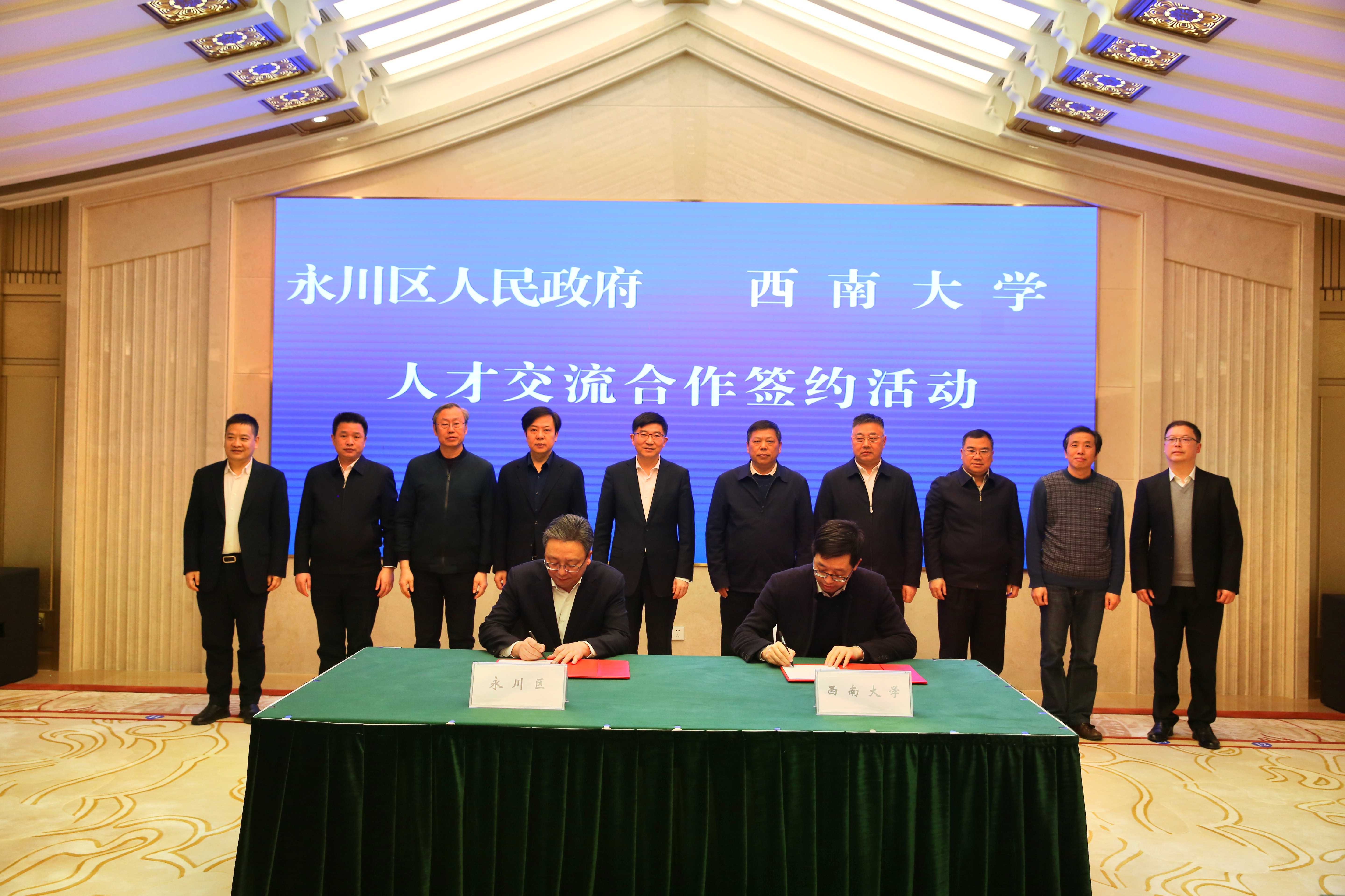 为进一步深化与永川区校地合作,2月22日,校长张卫国带队赴永川区考察交流,商讨在科技创新、乡村振兴、人才交流、教育培训等领域开展合作,并签订人才交流合作协议。永川区委书记张智奎,区委副书记、区长常晓勇,区人大常委会主任潘文峰,区政协主席文良印,区委副书记蔡焘等区领导,Beat365中国唯一官方网站党委副书记安春元,副校长赵国华等出席签约仪式。