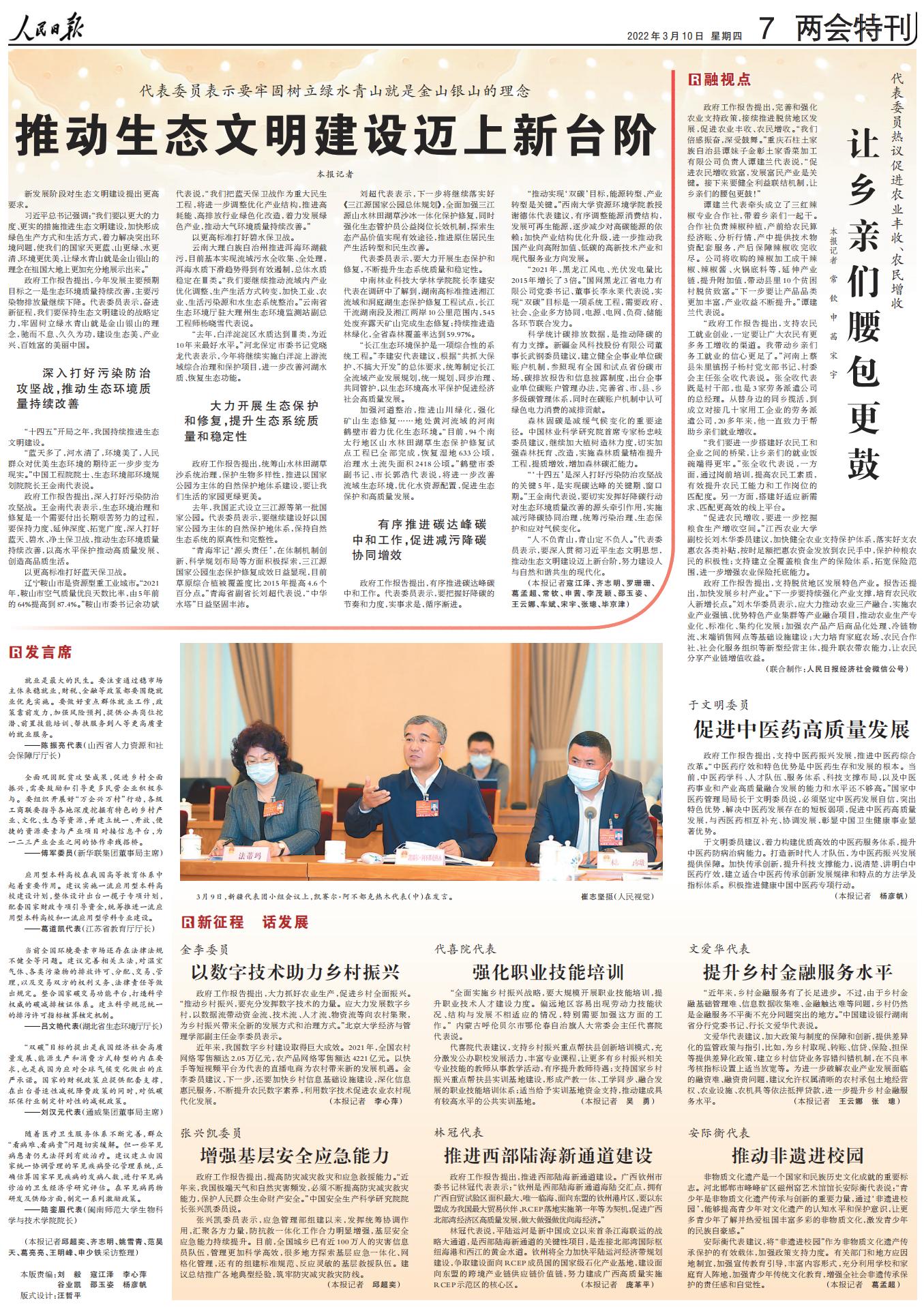 人民日报海外版(3月10日第5版):绿色发展,为美丽中国添华彩(两会聚焦)