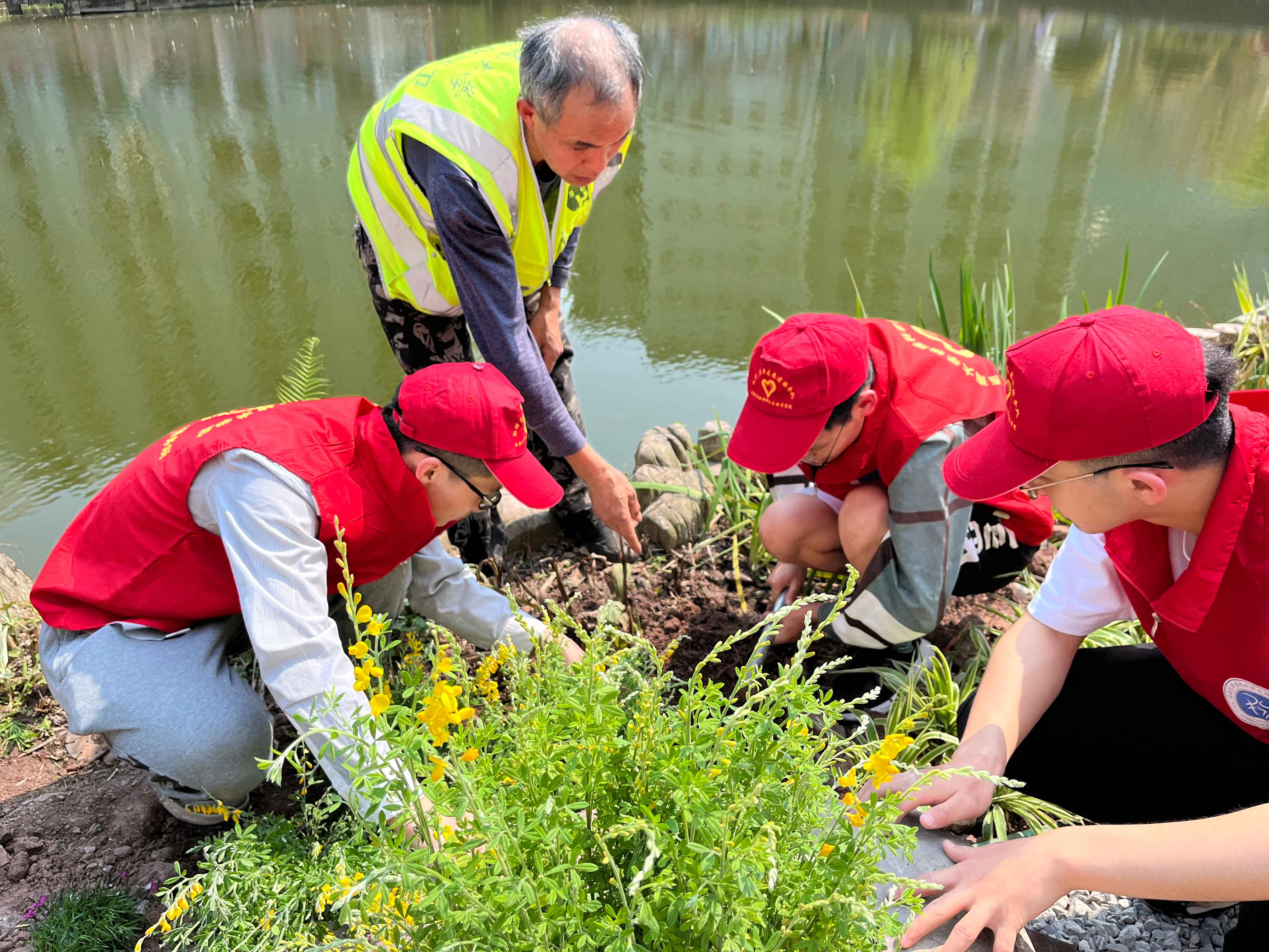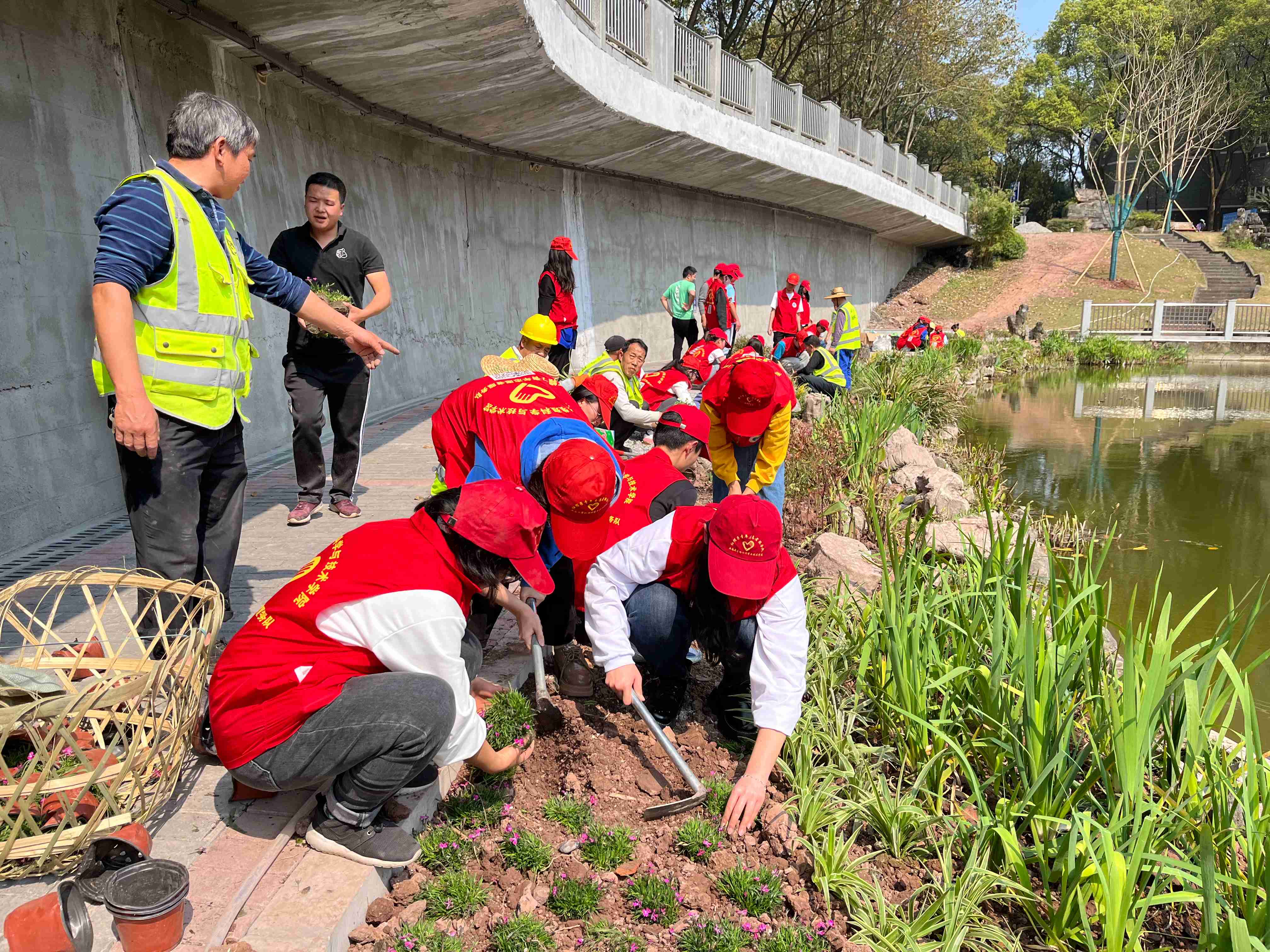 据悉,崇德湖是学校地标景观之一,寒假里,后勤集团基于“蓝花楹主题湖景”的思路对其进行改造、清理,一方面去除杂草、杂树,开阔视野,一方面环湖新栽种8棵蓝花楹,突出蓝花楹景观。后勤集团计划在这片区域创新尝试“动态花镜”,即结合季节、时令穿插不同种类的鲜花,让每个季节都有花开。这也是此次活动的主要任务,播下花种、种上花草,精心养护,两三个月后就能初具规模。届时,流水、静水、花镜、小桥、白帆……共同形成毕业季的打卡景点和“四时皆有风景”的人文情怀景观。