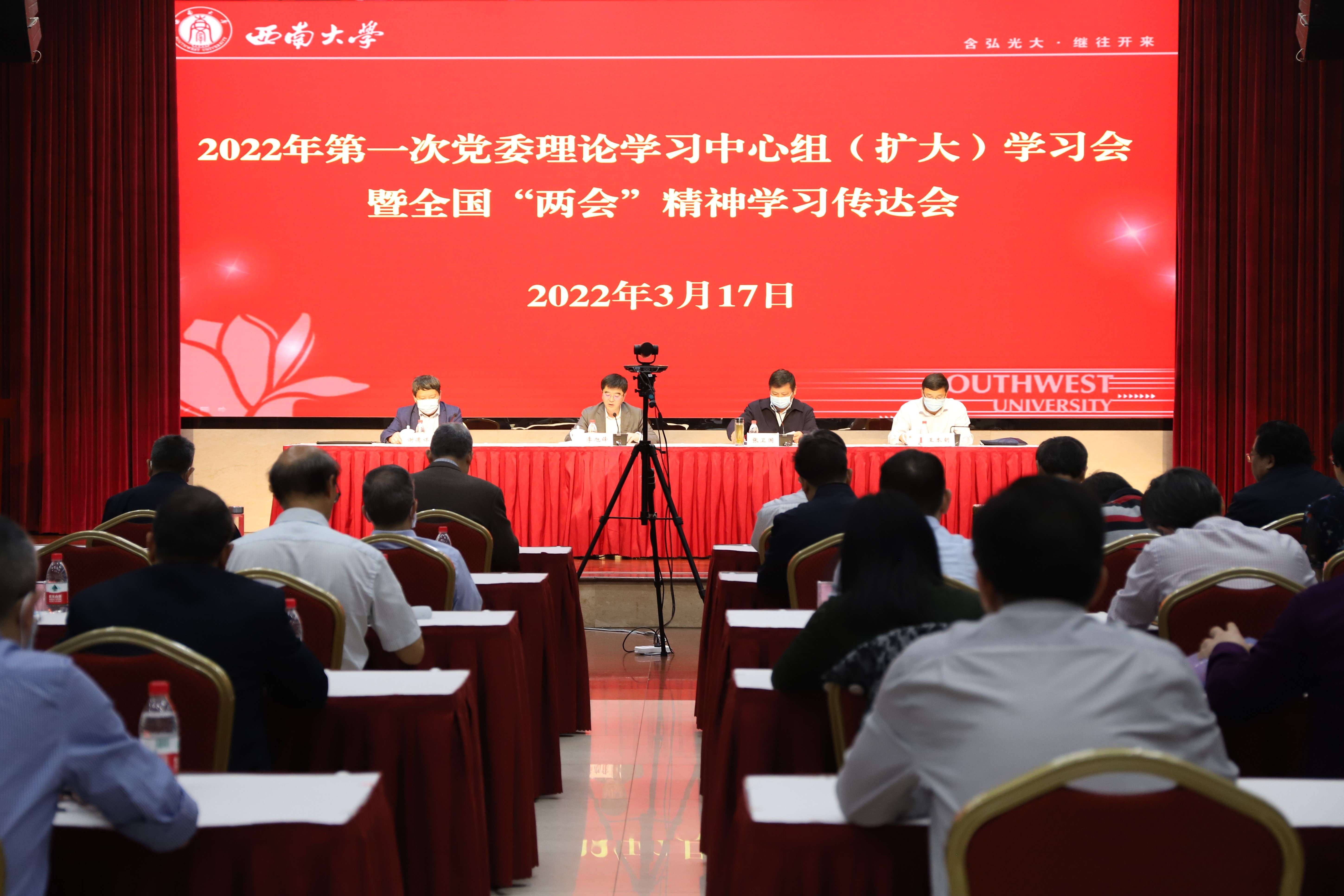 3月17日,学校在东方红会议厅主会场和各单位会议室分会场召开2022年第一次党委理论学习中心组(扩大)学习会暨全国两会精神学习传达会。全体在校校领导、党委常委、党委委员、纪委委员,副处级以上领导干部,各民主党派基层组织和统战团体负责人参会,学校党委书记李旭锋主持会议。