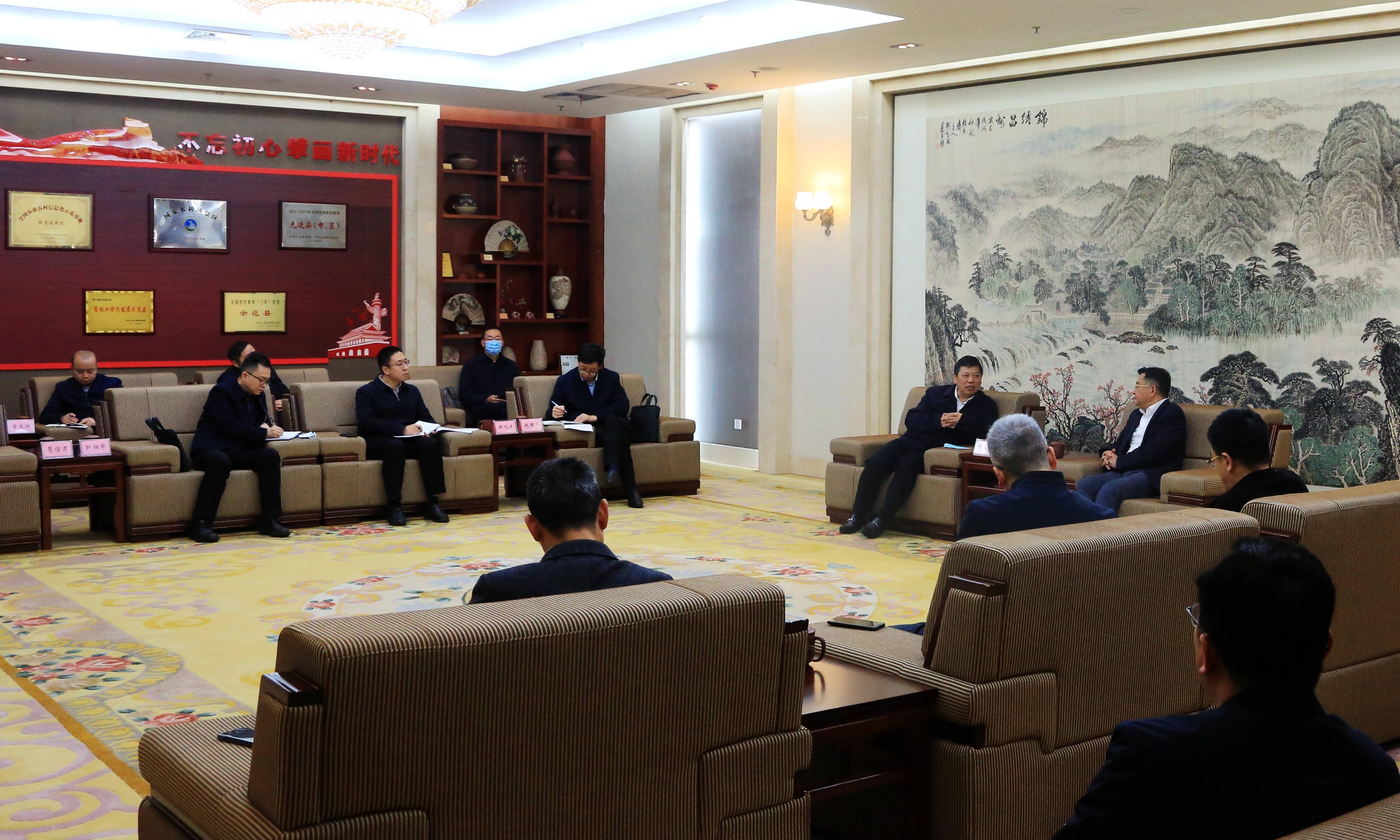 张卫国一行与荣昌区区长高洪波、区委副书记龚建海、副区长程建林、副区长李德伟等区领导座谈。