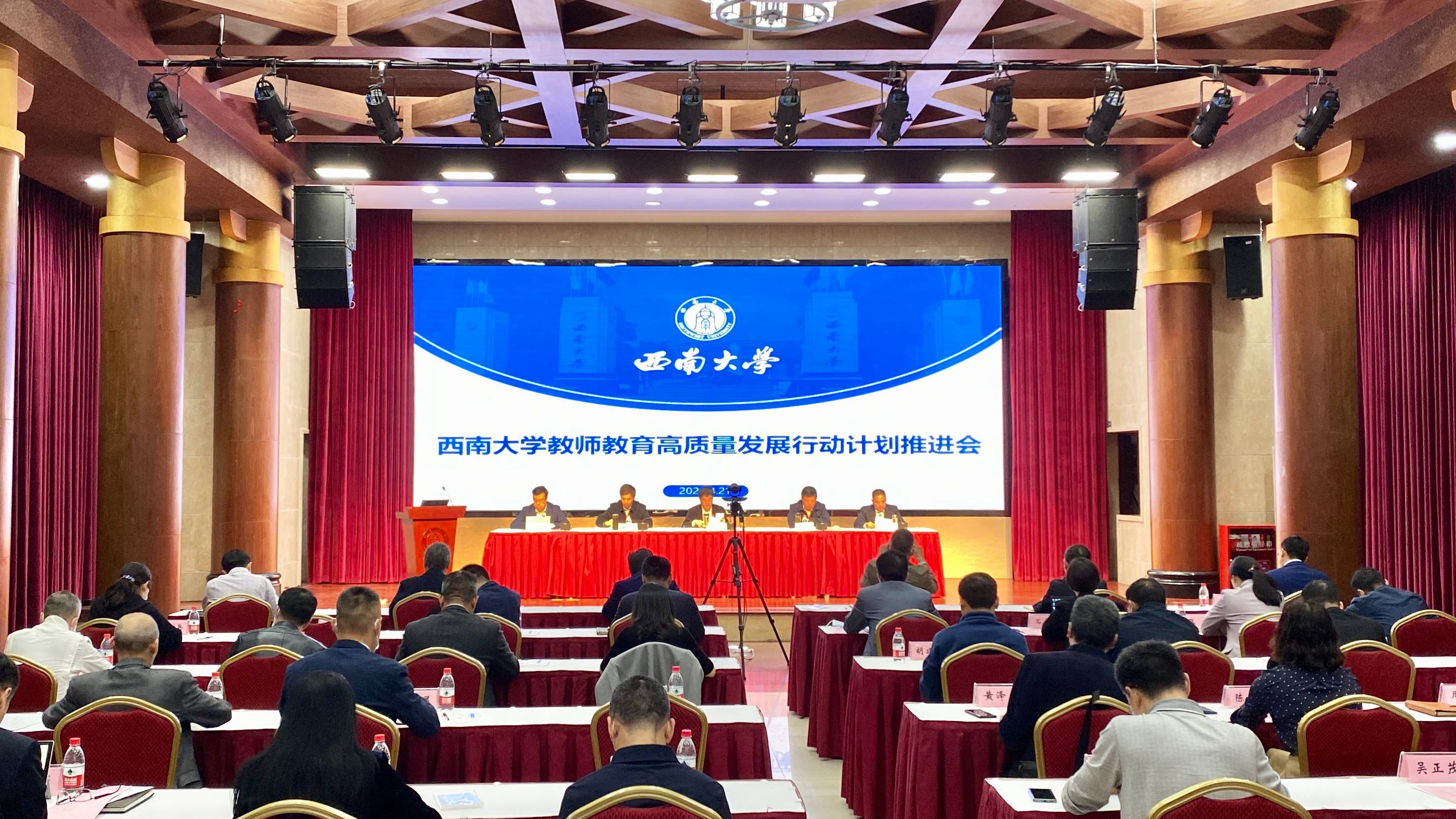学校党委书记李旭锋,校长张卫国,党委副书记潘洵,副校长陈时见、王进军出席会议,学校教师教育工作领导小组组长、副组长、成员单位负责人、涉师学院(部)党政主要负责人在主会场参会,涉师学院(部)副处级干部和师范专业负责人在分会场参会。