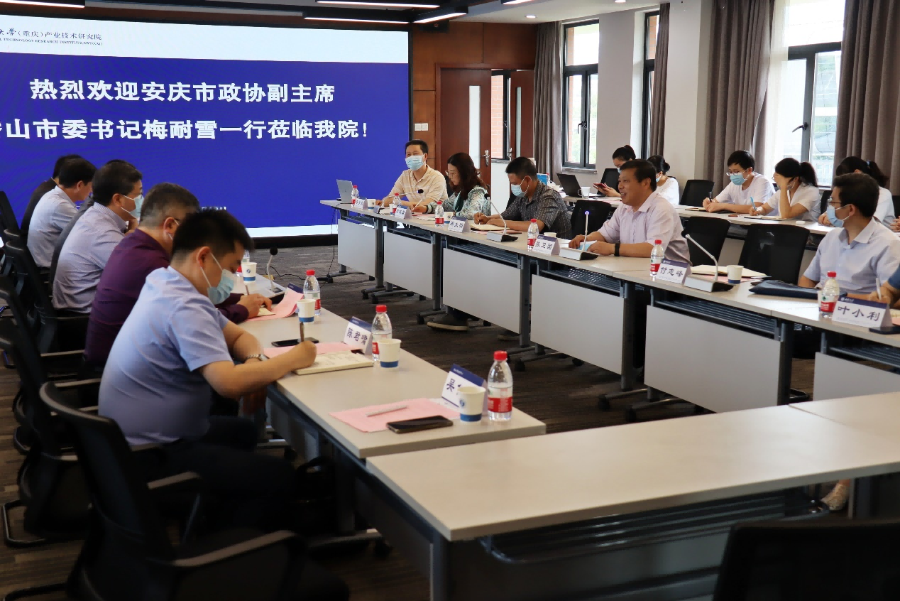 5月13日下午,安庆市政协副主席、潜山市委书记梅耐雪带队来校会谈科技成果转化合作事宜。学校校长张卫国出席座谈会,潜山市人大副主任汪为民,潜山市副市长余金苗,潜山市招商中心、企业服务中心主任陈君啸,潜山市委办综合室副主任徐骏,上海盈科汇金总裁胡兵,高晟投资有限公司经理吴仁敏,学校药学院 中医药学院以及相关单位负责人和师生代表参加会议。