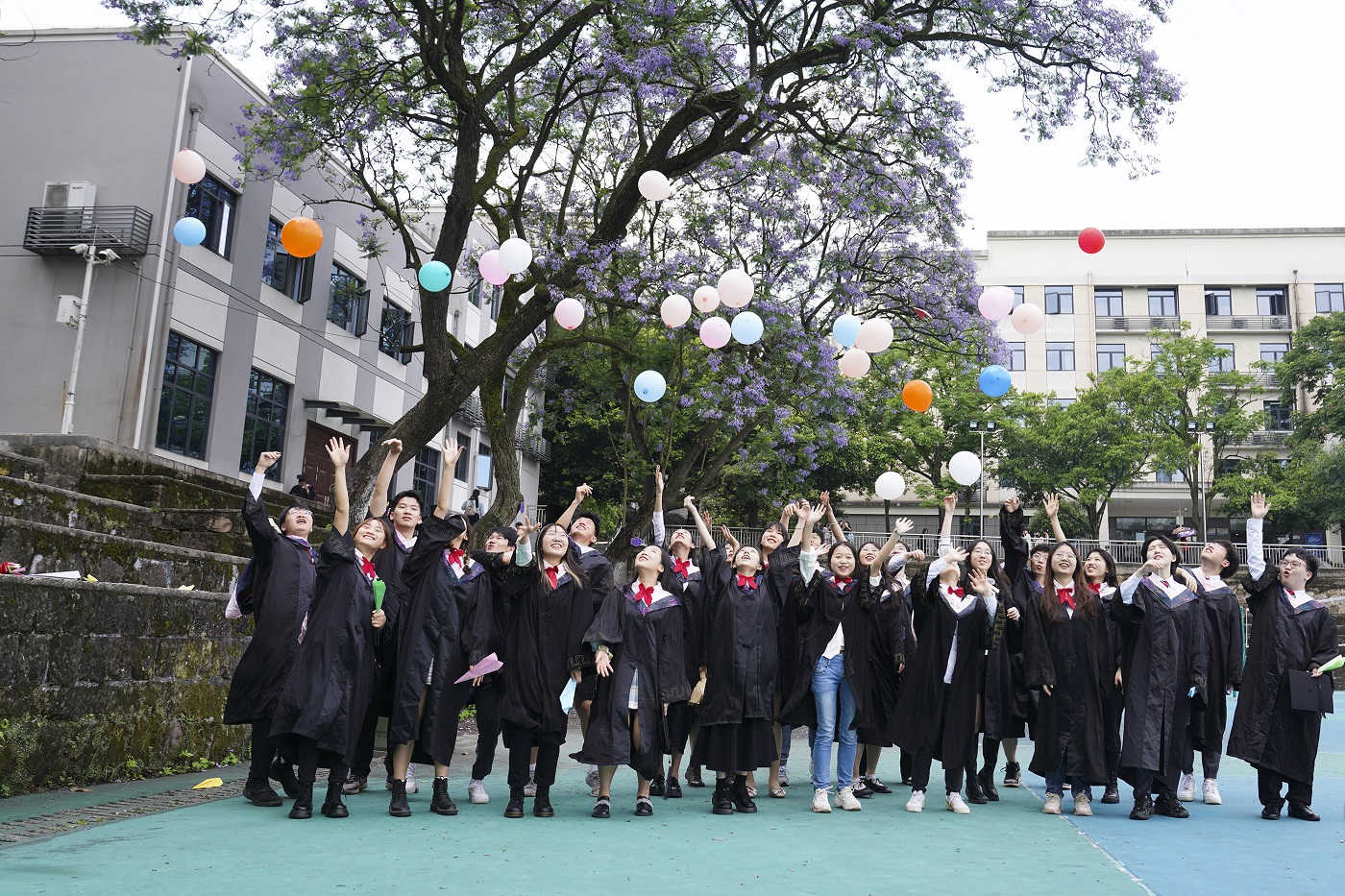蓝花楹的花朵呈紫蓝色,雅丽清秀,气质浪漫,恰好符合毕业生那种对青春的感伤和对未来的憧憬,因此,它也被Beat365中国唯一官方网站师生称为“毕业花”。第四运动场旁,三株树龄五十多年的蓝花楹树下已经成为毕业生们拍摄毕业照的首选网红打卡地。