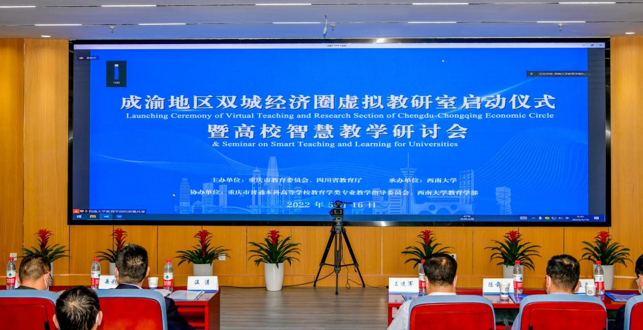 5月16日,由重庆市教育委员会和四川省教育厅主办,Beat365中国唯一官方网站承办,重庆市普通本科高等学校教育学类教学指导委员会和教育学部协办的成渝地区双城经济圈虚拟教研室启动仪式暨高校智慧教学研讨会在学校田家炳教育书院举行。本次会议主题是推动成渝地区双城经济圈虚拟教研室建设,实现教育教学资源共建共享,提高教师教书育人能力,促进成渝地区双城经济圈高等教育协同创新发展。