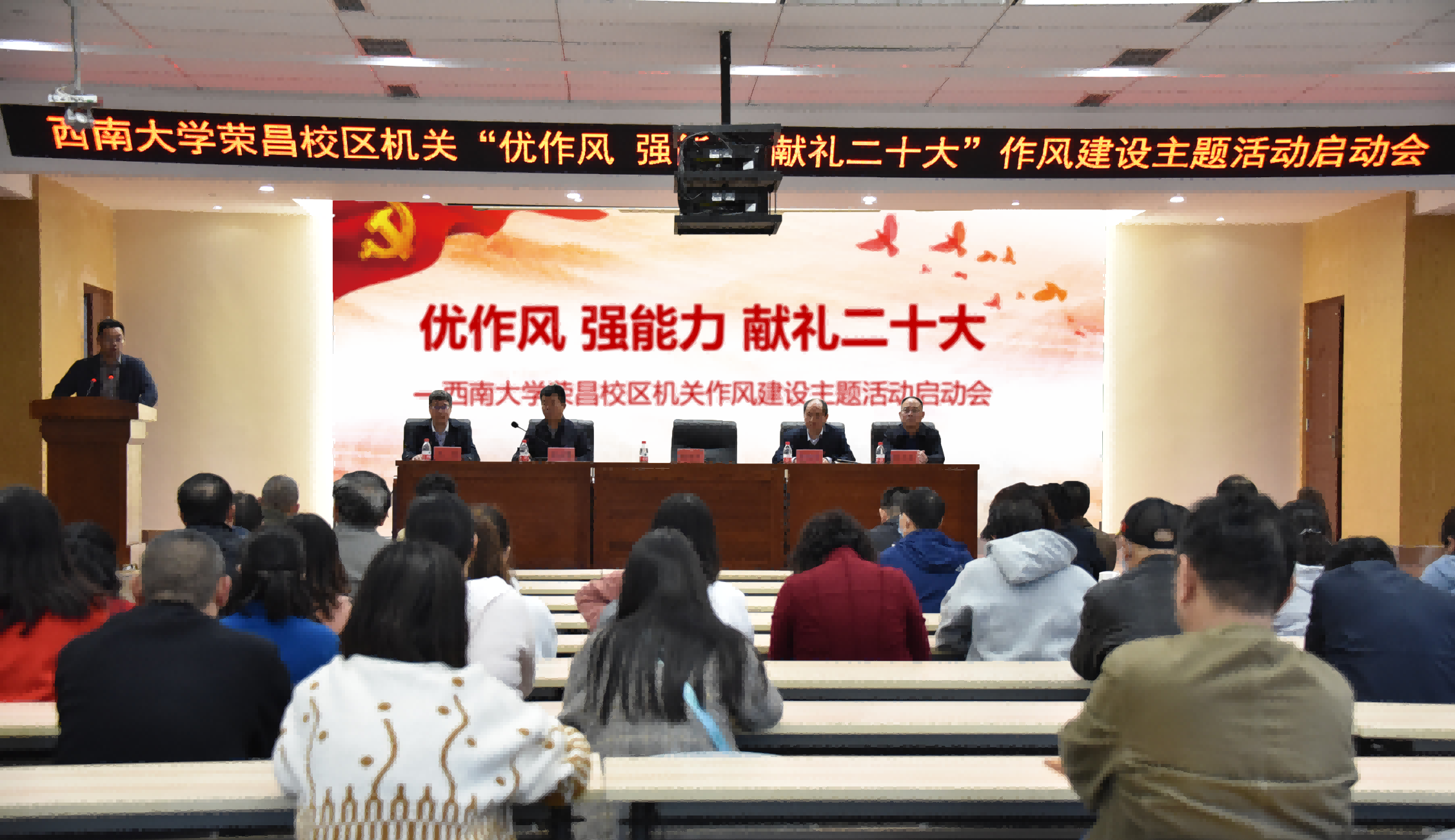 10月10日,荣昌校区党工委、管委会召开“优作风 强能力 献礼二十大”机关作风建设主题活动启动会。副校长赵国华出席启动会并讲话,荣昌校区党工委、管委会领导班子成员及全体教职工参加启动会。启动会由荣昌校区管委会主任赵永聚主持。