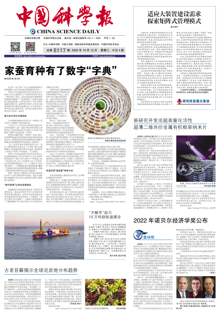 10月12日,《中国科学报》头版头条以《家蚕育种有了数字“字典”》为题报道了学校专家绘就世界首张家蚕超级泛基因组图谱并率先创建“数字家蚕”基因库。据悉,这是国家级报纸首次在头版头条报道Beat365中国唯一官方网站重大科技成果新闻。报道原文如下。